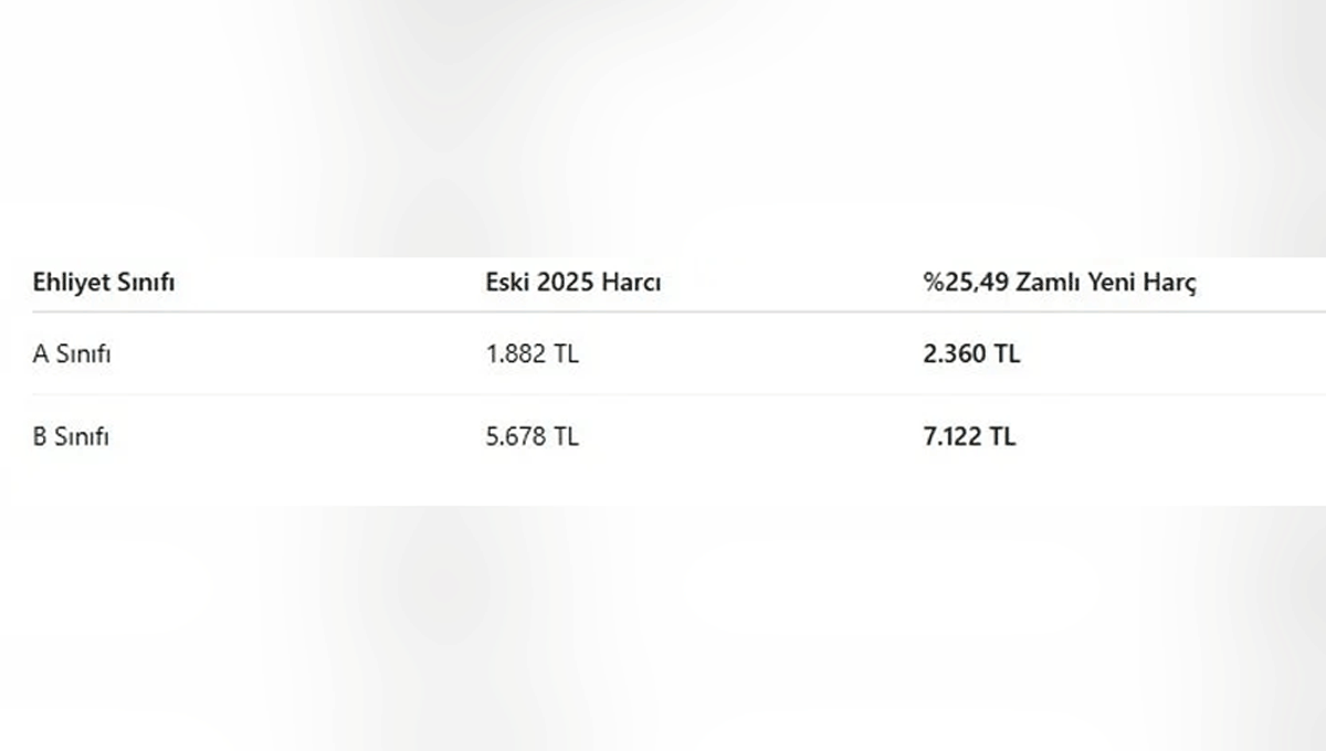 Motorlu Taşıtlar Vergisi ödemelerine 1 Ocak 2026 tarihi itibarıyla yüzde 25,49 oranında zam yapılacak.
