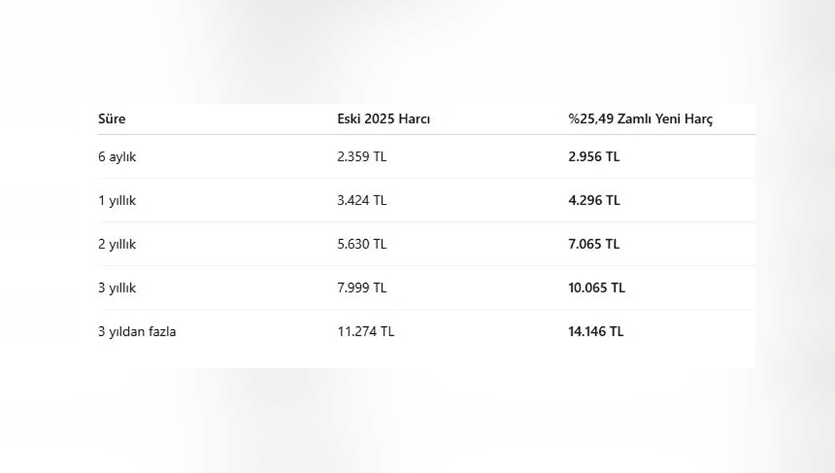 2026'da geçerli olacak fiyatlar şu şekilde: