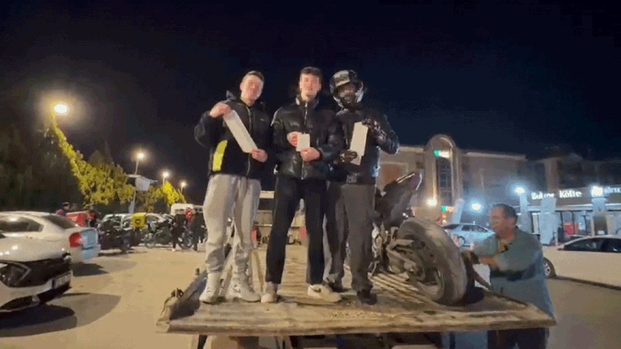 Olay, Büyükdere Mahallesi'nde bulunan bir otoparkta meydana geldi. Edinilen bilgilere göre, otoparkta uygulama yapan sivil trafik polis ekipleri, durumundan şüphelendiği araçlarla alakalı inceleme yaptı. Plakası ve aynası olmayan Ç.Ç. isimli sürücünün yapılan sorgulamasında ehliyetinin de yetersiz olduğu tespit edildi. Araç çekici yardımıyla çekilirken trafikten 1 ay süreyle men edildi. Sürücüye ise aynasının olmaması, ehliyetinin yetersiz oluşu ve plakasız araç kullanmaktan toplamada 58 bin TL idari para cezası kesildi. Ehliyetine el konulan Ç.Ç., ceza makbuzu ile çekici üzerine bağlanan motosikletinin yanında poz verdi.