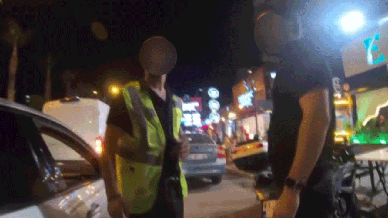 Polisin müşteri gibi valenin yanına gittiği, vale kimliği olmayan kişiyi suçüstü yakaladığı anlar da görüntülere yansıdı.