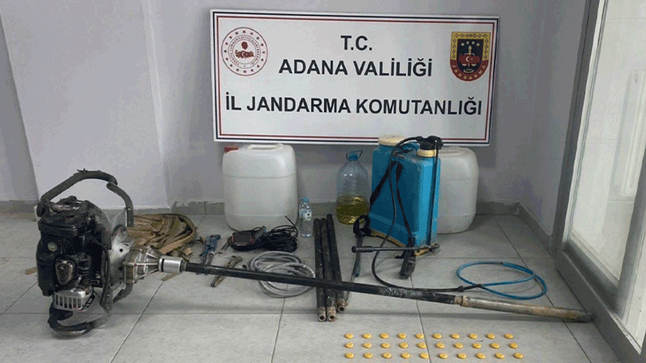 Adana'da İlçe Jandarma Komutanlığı ekiplerince tarihi ve kültürel değerlerin korunmasına yönelik yürütülen çalışmalar kapsamında Tufanbeyli ilçesine bağlı Şar Mahallesi'nde denetim gerçekleştirildi. Ekipler tarafından düzenlenen operasyonda kaçak kazı yaptıkları belirlenen 3 şahıs suçüstü yakalanırken, olay yerinde yapılan incelemelerde 1 karot makinesi, 4 karot ucu, 2 yılan kamera ile kazı amacıyla kullanılan çeşitli malzemeler ve çok sayıda karot parçası ele geçirildi. Gözaltına alınan 3 şüpheli hakkında Tufanbeyli Cumhuriyet Başsavcılığı tarafından adli işlem başlatıldı.