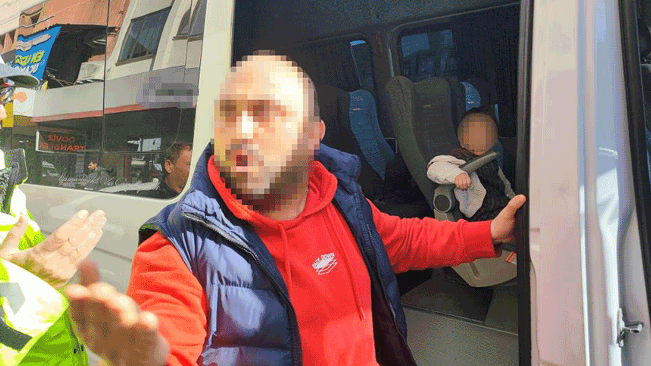 Daha sonra sürücünün aracının ön koltuğunda bir çocuğun oturduğunu fark eden ekipler, çocuğun arka koltuğa alınmasını istedi. Bunun üzerine sürücü, "Arkadaşınızla konuşunca bana cephe aldınız" diyerek tepki gösterdi ve çocuğu arka koltuğa aldı. Polis ekipleri çocuğa emniyet kemeri takılması yönünde uyarıda bulununca sürücü araçtan inip kendisini görüntüleyen basın mensuplarına da tepki gösterdi. Sürücü, kameraya vurarak saldırıda bulundu. Yaşanan gerginliğin ardından sürücü, çocuğa emniyet kemeri taktıktan sonra bölgeden ayrıldı.
