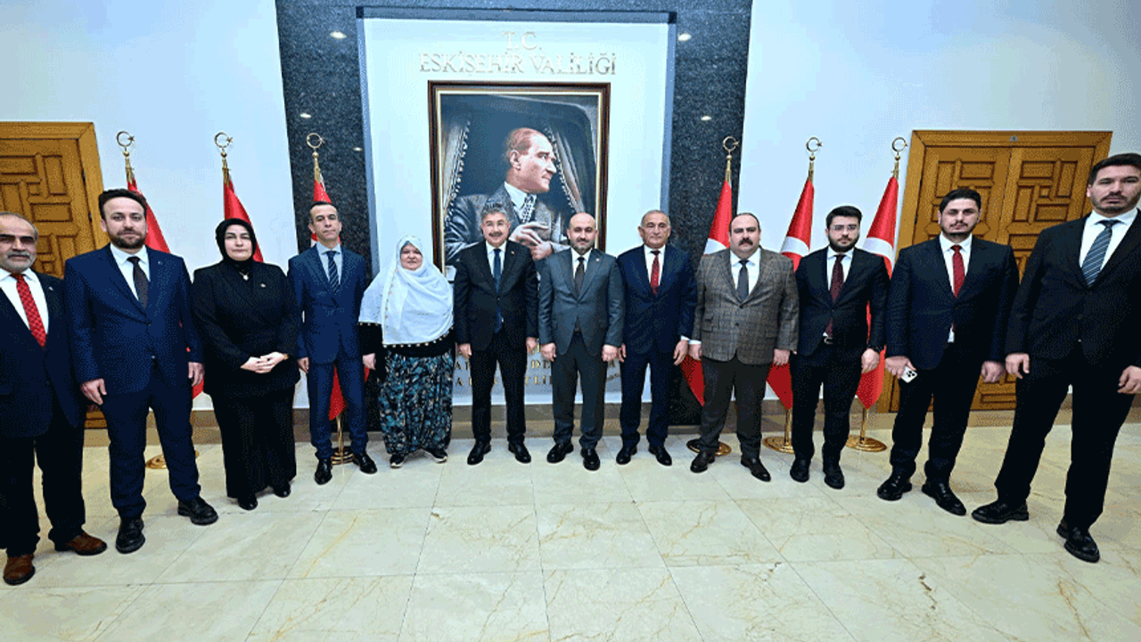 AK Parti İl Başkanı Gürhan Albayrak, Han Belediye Başkanı Bekir Belceli, İnönü Belediye Başkanı Serhat Hamamcı, Mihalgazi Belediye Başkanı Zeynep Güneş, Sarıcakaya Belediye Başkanı Ahmet Dönmez, AK Parti Eskişehir İl Sekreteri Esat Girgin, AK Parti Eskişehir İl Teşkilat Başkanı Erkan Koca, AK Parti Odunpazarı İlçe Başkanı Mustafa Kemal Bandırma, AK Parti Tepebaşı İlçe Başkanı Serhat Tunç, AK Parti İl Gençlik Kolları Başkanı Cihan Birsen ve AK Parti İl Kadın Kolları Başkanı Feriha Ertorun, Vali Dr. Erdinç Yılmaz'ı ziyaret ederek hayırlı olsun dileklerini iletti. Vali Yılmaz, ziyaretine gelen isimlerle toplu hatıra fotoğrafı çekindi.