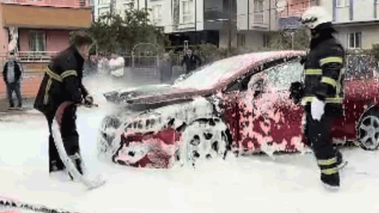Yangında otomobil büyük oranda zarar görürken, can kaybı veya yaralanma yaşanmadı. Polis ekipleri güvenlik önlemi alırken, yangının çıkış nedenine ilişkin inceleme başlatıldı.