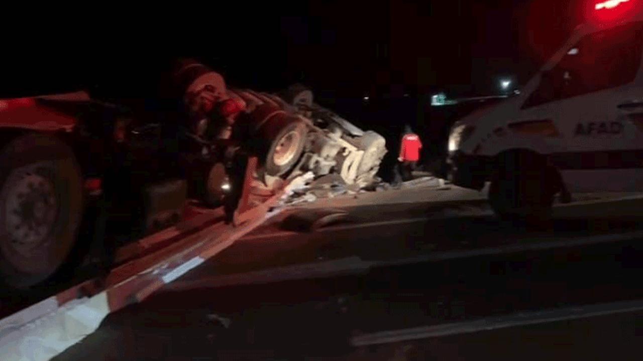 Aksaray'da sürücüsünün direksiyon hakimiyetini kaybettiği tır bariyerlere çarparak yola devrilirken, kabin altında kalan sürücü hayatını kaybetti.