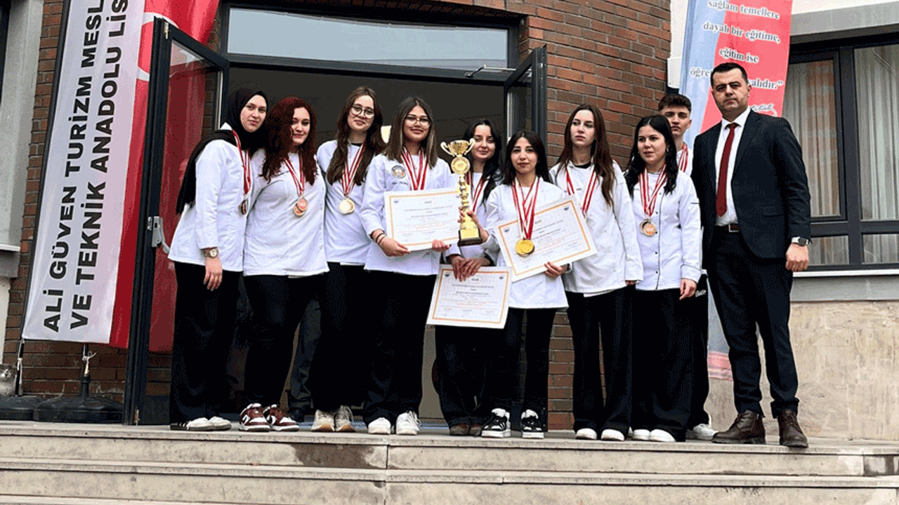 Antalya’da güzel başarı elde eden Ali Güven Turizm MTAL Yiyecek İçecek Hizmetleri Bölümü öğrencileri, İstanbul’da 17-20 Aralık 2025 tarihlerinde Türkiye Aşçılar ve Şefler Federasyonu tarafından düzenlenen 22. Uluslararası İstanbul Gastronomi Festivali’nde yine özgün sunumlarıyla “ 6 altın madalya, 4 gümüş madalya ve yılın en iyi lisesi kupasını kazanarak başarılarını bir kez daha kanıtladı.