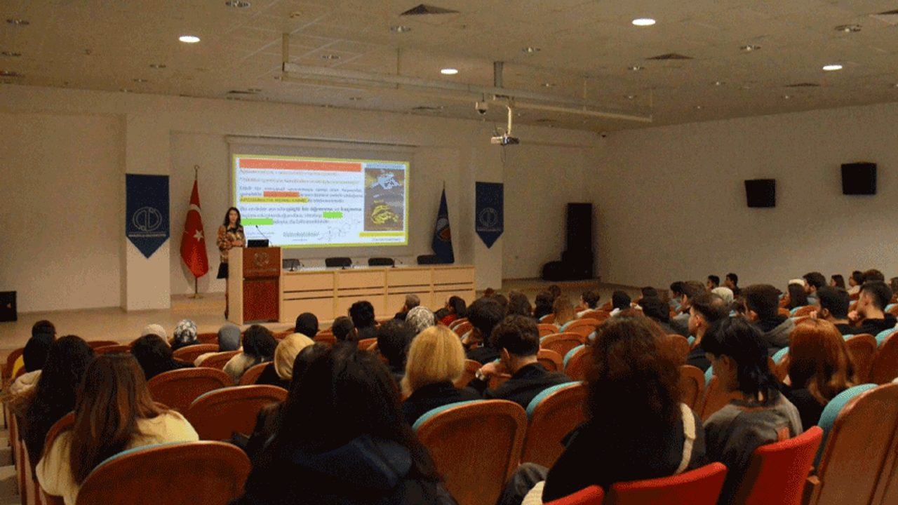 Açılış konuşmasını yapan Öğr. Gör. Ekin Aydın, biyoloji ve sanatın “taklit” teması etrafında birleştiğini belirterek, doğanın mühendisliği ile sanatın estetik yorumunun ortak bir noktada buluştuğunu ifade etti. Ardından söz alan Dr. Zeynep Fırat, taklit kavramının biyolojiden sanata ve teknolojiye uzanan geniş bir etkileşim alanına sahip olduğunu vurguladı. Fırat, taklidin öğrenme, hayatta kalma ve inovasyon için temel bir araç olduğunu belirterek, biyolojideki mimikri mekanizmasından çocuklarda taklit yoluyla beceri öğrenimine kadar pek çok örnek paylaştı. Etkinlik, yapay zekâ ile hazırlanmış bir videonun izlenmesi ve soru-cevap bölümünün ardından sona erdi.