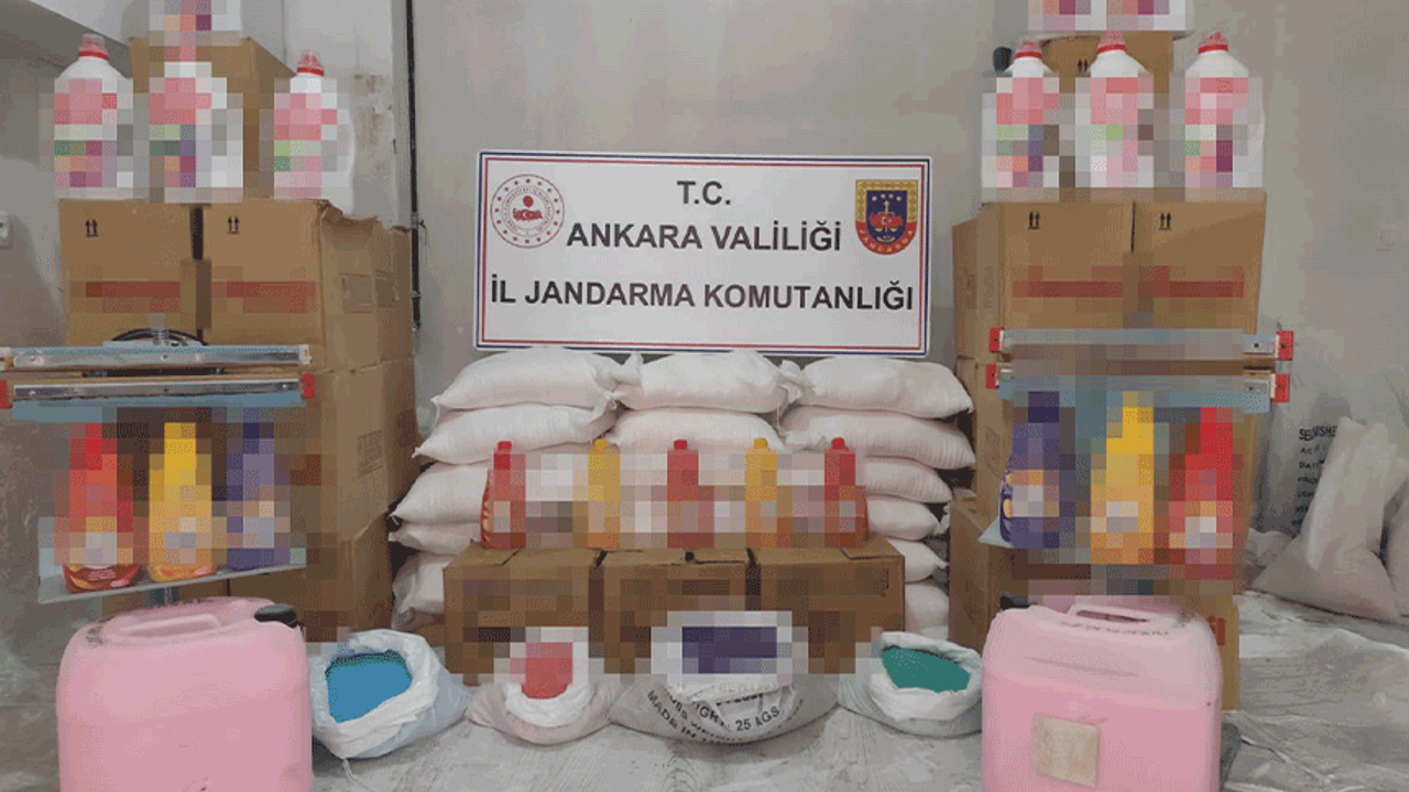 Ankara İl Jandarma Komutanlığı Kaçakçılık ve Organize Suçlarla Mücadele Şubesi ekipleri, Yenimahalle’de Y.S. ve M.S.’ye ait depoda sahte temizlik malzemesi üretildiğini tespit etti. Söz konusu depoya düzenlenen operasyonda 500 litre sıvı deterjan, 2 adet ambalaj makinası, 500 kilogram tuz ve 120 kilogram farklı renklerde boncuk tuz ele geçirildi. Ele geçilen malzemelerin piyasa değerinin 1 milyon 200 bin lira olduğu öğrenilirken, gözaltına alınan 2 şüpheli hakkında adli işlem başlatıldı.
