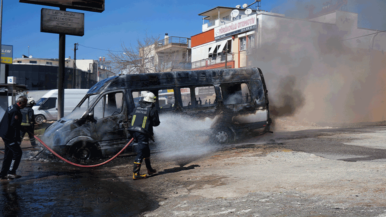 Antalya'da park halindeki servis ve otomobil alev alev yandı
