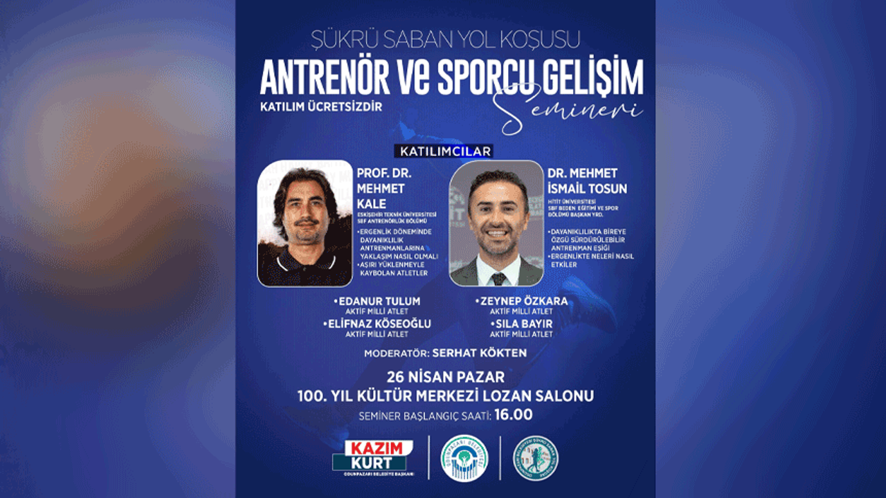 Şükrü Saban Yol Koşusu kapsamında düzenlenen “Antrenör ve Sporcu Gelişim Semineri”, spor dünyasına ilgi duyan herkesi buluşturuyor. 26 Nisan Pazar günü 100. Yıl Kültür Merkezi Lozan Salonu’nda gerçekleştirilecek seminerde; Prof. Dr. Mehmet Kale, Dr. Mehmet İsmail Tosun, Edanur Tulum, Elifnaz Köseoğlu, Zeynep Özkara ve Sıla Bayır katılımcı olarak yer alacak.