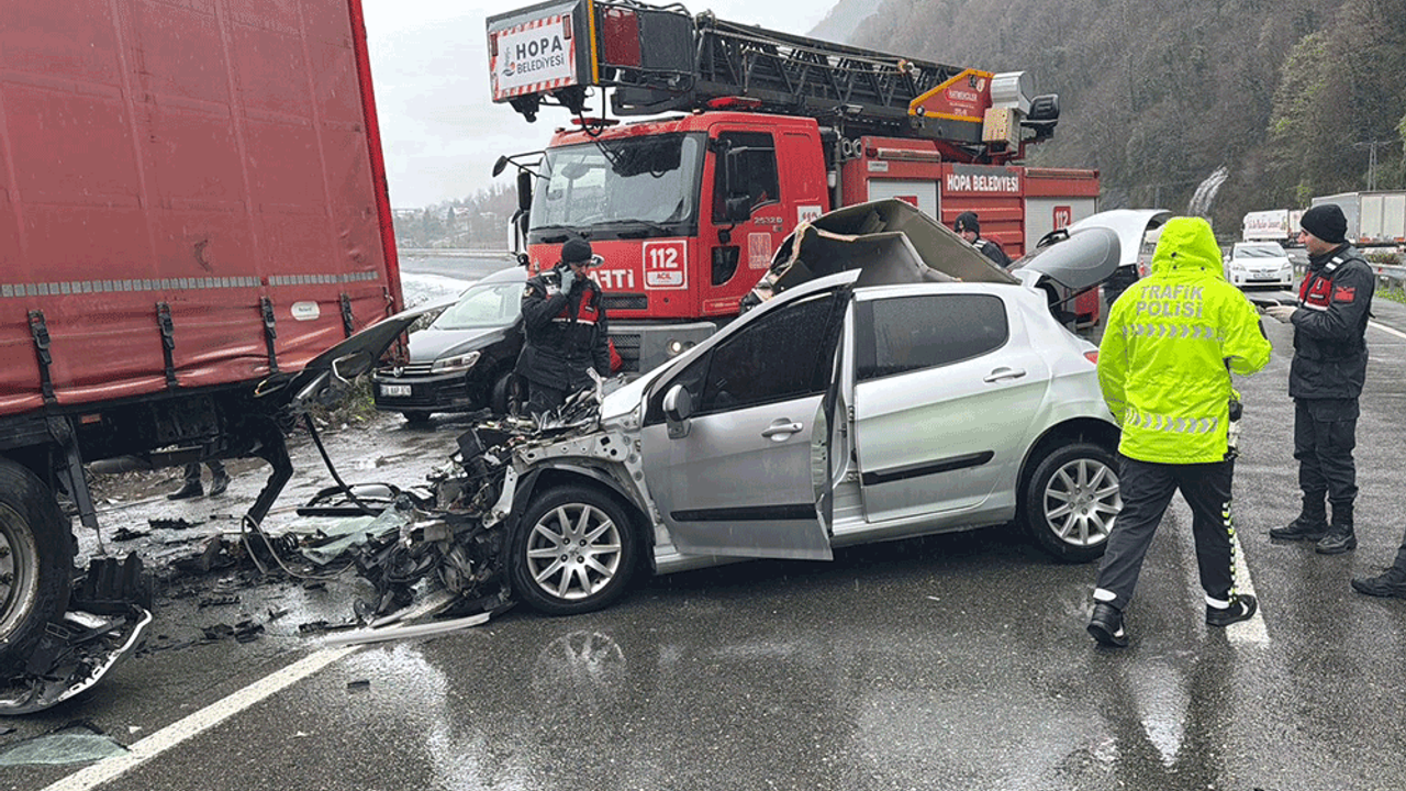 Kaza, Artvin'in Hopa ilçesi Kopmuş mevkiinde meydana geldi. Alınan bilgiye göre, İsa Ak (39) yönetimindeki 19 AGO 077 plakalı otomobil, henüz belirlenemeyen bir nedenle yol kenarında park halindeki Gürcistan plakalı tıra arkadan çarptı. Çarpmanın etkisiyle otomobil hurdaya dönerken, araçta bulunan Erkam Abdurrahman Ak (45) ve Gürcistan uyruklu Kanama Sakvarelidze (35) olay yerinde hayatını kaybetti. Yaralı sürücü İsa Ak ise araçta sıkıştı. İhbar üzerine olay yerine AFAD, Hopa Arama Kurtarma Derneği (HOPAK), Hopa itfaiye, jandarma ve 112 Acil Sağlık ekipleri sevk edildi. Ekiplerin yoğun çalışmaları sonucu araçtan çıkarılan İsa Ak, sağlık ekiplerince hastaneye kaldırıldı. Kaza sonrası bölgede trafik bir süre kontrollü olarak sağlanırken, ekipler olayla ilgili inceleme başlattı.