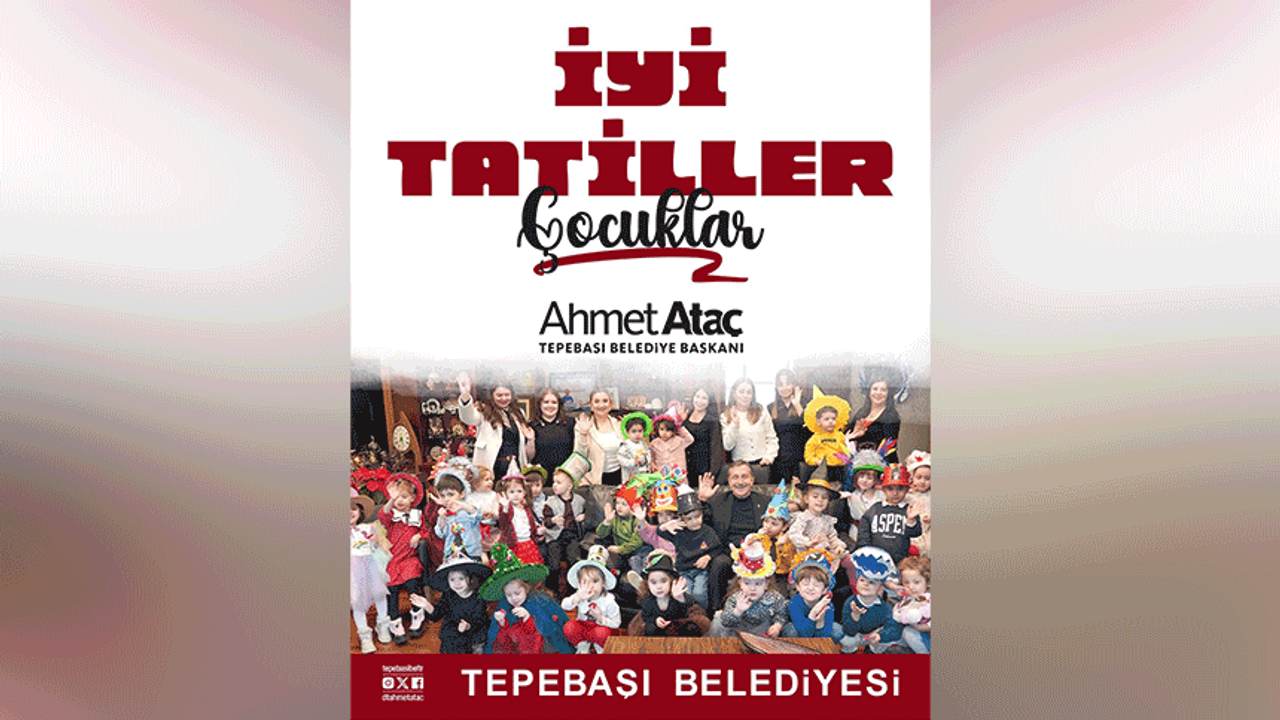 Tepebaşı Belediye Başkanı Ahmet Ataç sosyal medya hesabından yaptığı paylaşımla çocuklara ve öğretmenlere iyi tatiller diledi. Başkan Ataç yaptığı paylaşımda şu ifadelere yer verdi. “Sevgili çocuklarım, heyecanla beklediğiniz karne günü geldi. Tatilde dinlenin, eğlenin, kitap okuyun ve yeni döneme çok daha mutlu ve enerjik dönün. Hepinize ve tüm öğretmenlerimize keyifli ve huzurlu bir tatil diliyorum.”