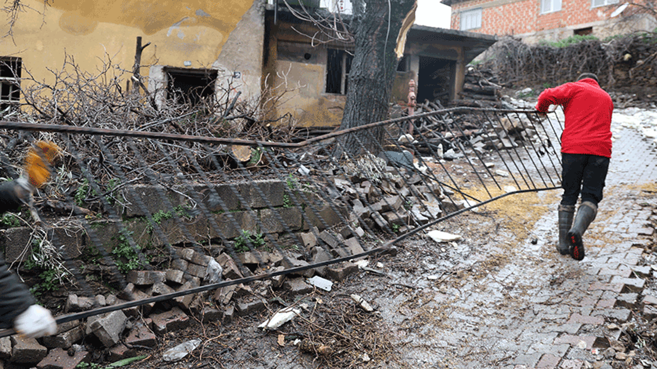 Fırtınanın ardından köylüler zarar gören evlerinin çatılarını kendi imkanlarıyla tamir etmeye çalışıyor.