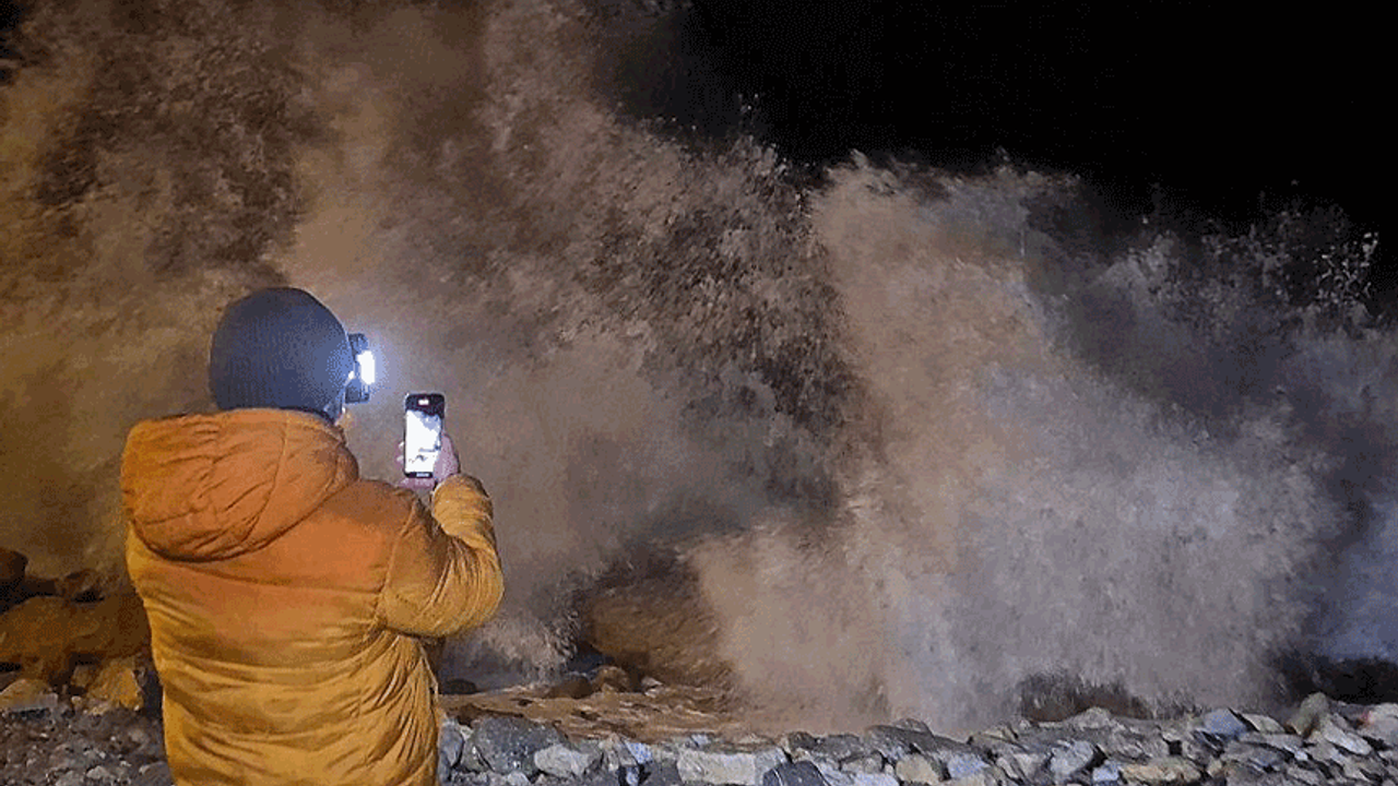 Saatte hızı 75 kilometreye ulaşan rüzgar ve dev dalgaların Cuma günü saat 19.00'a kadar devam etmesi bekleniyor.