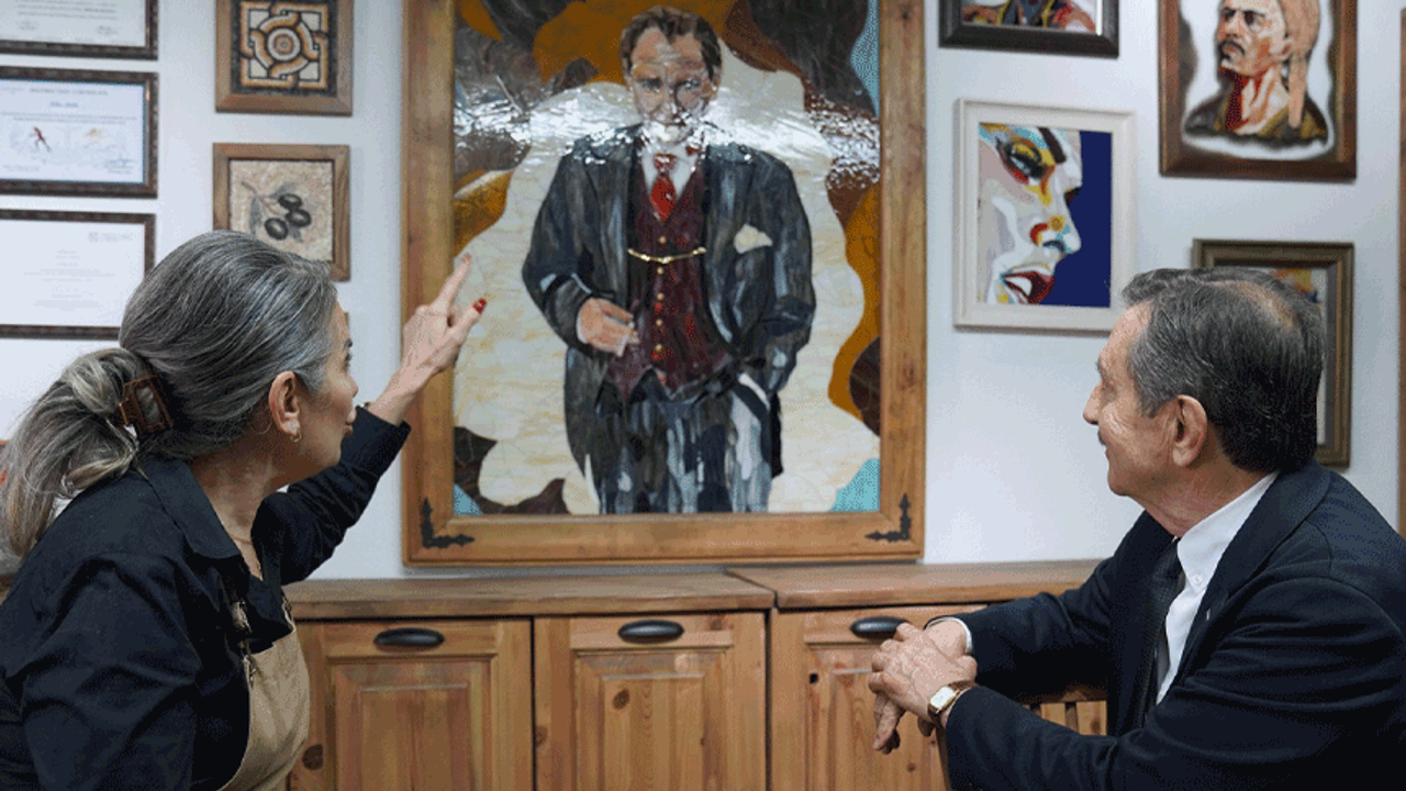 Tepebaşı Belediye Başkanı Ahmet Ataç, cam sanatçısı Gülşen Bayır’ı atölyesinde ziyaret etti. Ziyarette Gülşen Bayır tarafından hazırlanan eserleri inceleyen Başkan Ataç, üretim süreci hakkında da bilgi aldı.