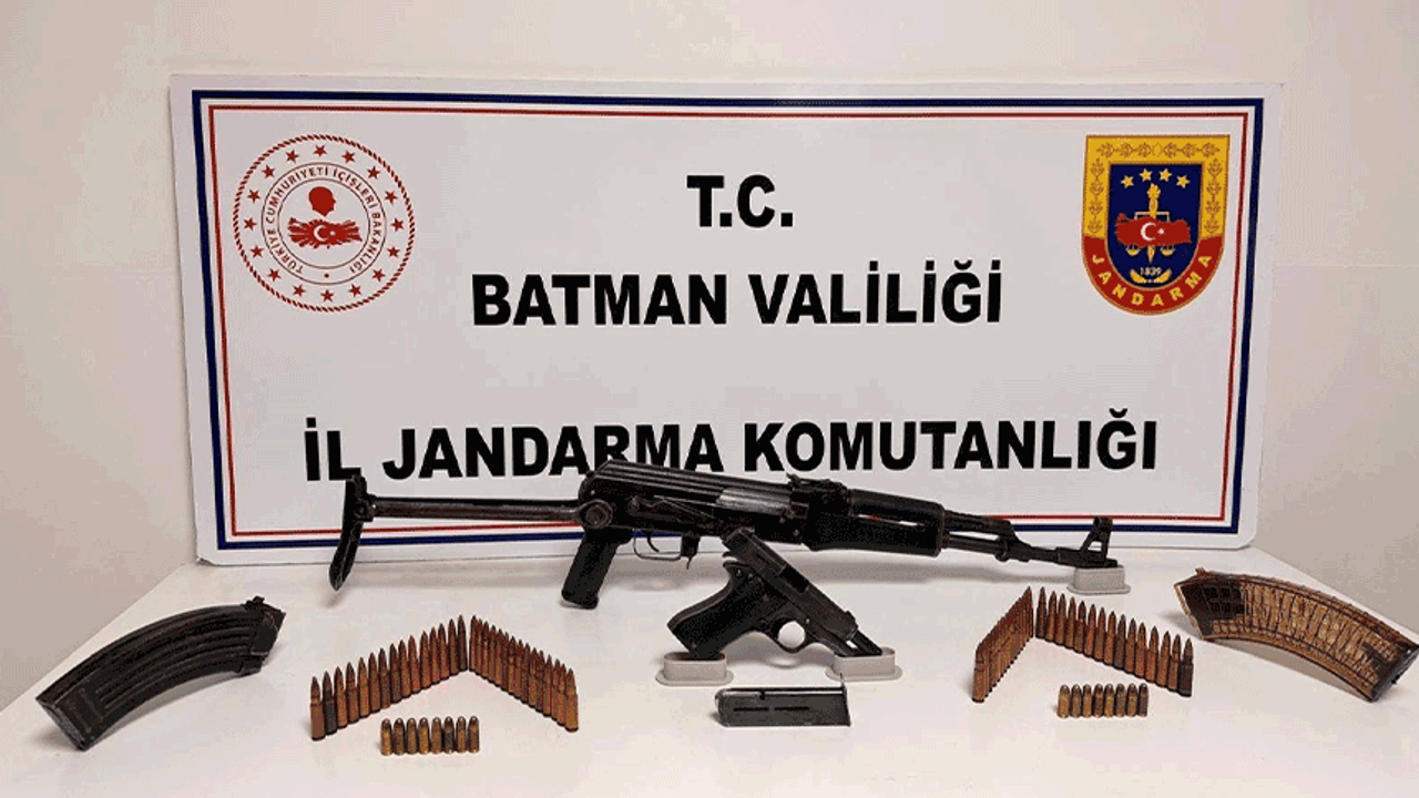 Batman Merkez Çamlıtepe Mahallesi'nde 20 Ocak 2026 tarihinde gerçekleştirilen operasyonla ilgili detaylar paylaşıldı. Jandarma ekiplerinin önceden belirlediği bir ikamete baskın düzenlendi. Operasyonda, 1 adet ruhsatsız AK-47 Kalaşnikof piyade tüfeği, 1 adet 9 milimetre çapında tabanca 2 adet AK-47 piyade tüfeği şarjörü, 1 adet tabanca şarjörü, 60 adet AK-47 Kalaşnikof piyade tüfeği fişeği, 13 adet 9 milimetre tabanca fişeği ele geçirildi.