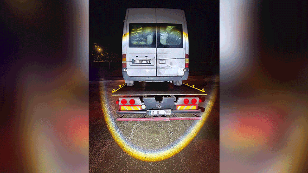 Minibüs hemen gerekli işlemlerin ardından çekiciye yüklenerek, yediemin otoparkına çekildi.