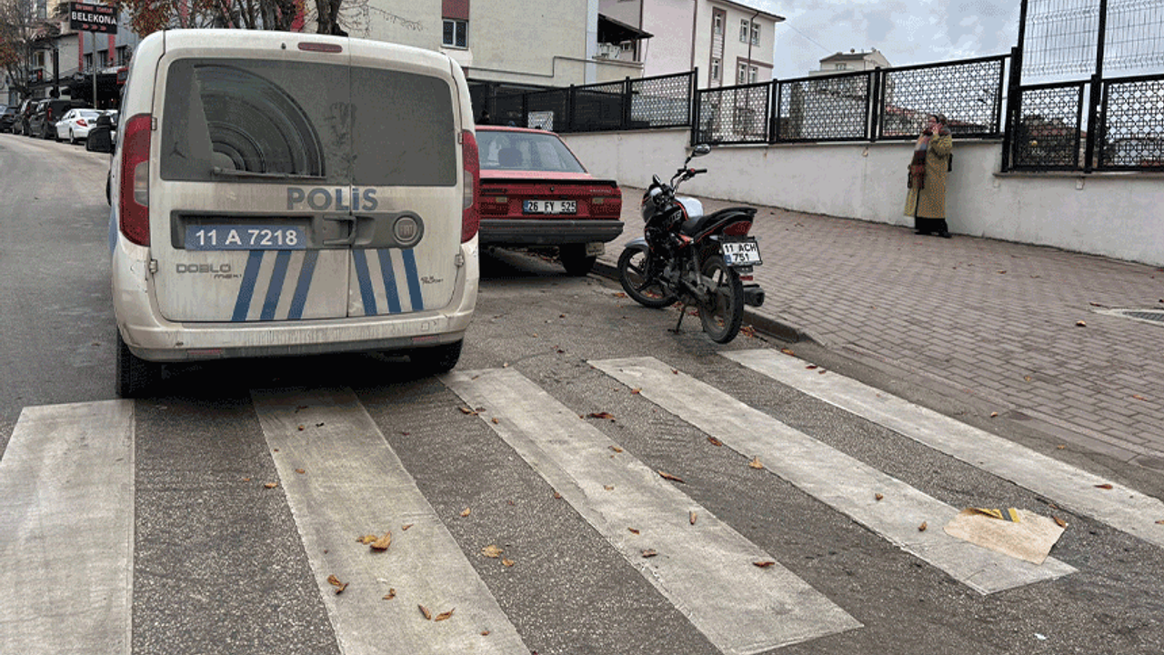 Alınan bilgilere göre; Bilecik merkez Atatürk Bulvarı'ndan Tepebaşı mevkiine seyir halindeki 11 TH 533 plakalı hafif ticari araç sürücüsü A.K., yaya geçidinden geçmek isteyen bir şahsa yol vermek için durdu. Bu esnada aynı istikamette aracın arkasından seyreden 11 ACH 751 plakalı motosiklet sürücüsü M.T.K., duramayarak 11 TH 533 plakalı hafif ticari araca arkadan çarptı. Meydana gelen trafik kazasında motosiklet sürücüsü M.T.K. yaralandı. Yaralı olay yerine gelen acil servis ekiplerince yapılan ilk müdahalesinin ardından Bilecik Eğitim ve Araştırma Hastanesine kaldırıldı.