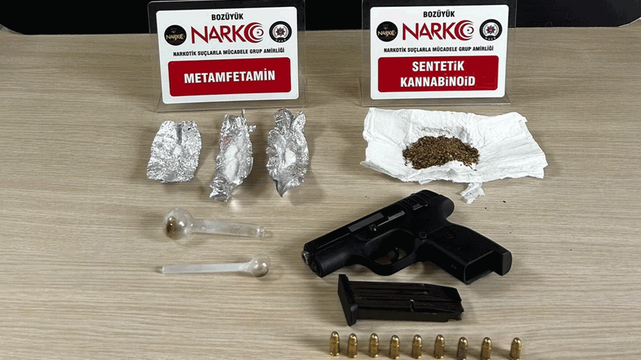 Edinilen bilgilere göre, Bilecik İl Emniyet Müdürlüğüne bağlı Bozüyük Narkotik Büro Amirliği ekiplerince yürütülen çalışmalar kapsamında bir şüpheli şahsa yönelik operasyon düzenlendi. Yapılan aramalarda muhtelif miktarlarda metamfetamin ve sentetik kannabinoid (bonzai) maddesi ele geçirildi. Operasyonda ayrıca 1 adet kurusıkıdan bozma tabanca ve fişeği ile 2 adet cam aparat (bong) bulundu. Ele geçirilen malzemelere el konulurken, 1 şüpheli şahıs yakalandı.