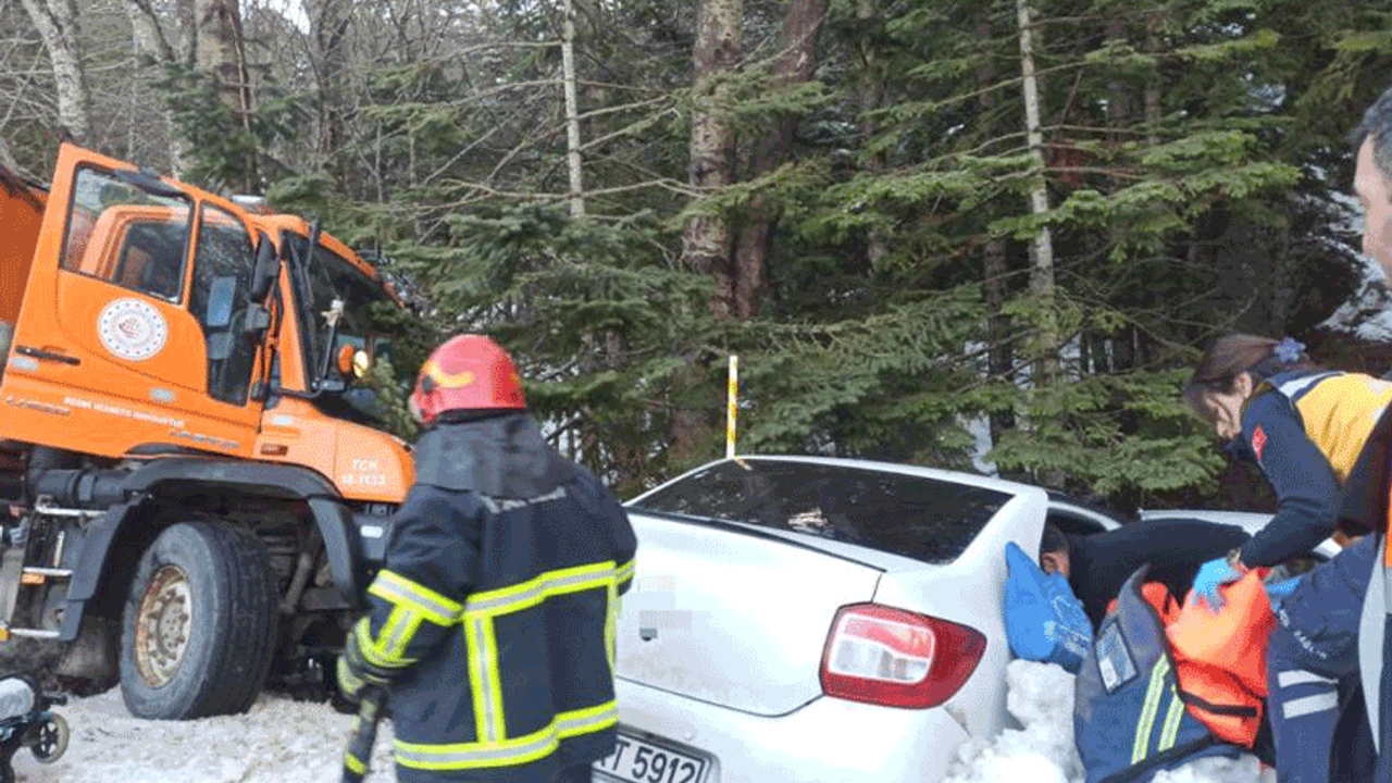 Edinilen bilgiye göre kaza, Bursa Uludağ yolu üzerinde meydana geldi. Kar temizleme çalışması yapan kar küreme aracı, sürücüsünün direksiyon hakimiyetini kaybetmesi sonucu seyir halindeki otomobille çarpıştı. Çarpışmanın etkisiyle otomobil yoldan çıkarak şarampole doğru savruldu. İhbar üzerine olay yerine sağlık ve kurtarma ekipleri sevk edildi. Araçta sıkışan yaralılar ekiplerin dikkatli çalışması sonucu bulundukları yerden çıkarıldı. İlk müdahaleleri olay yerinde yapılan 2 yaralı, ambulanslarla çevredeki hastanelere kaldırıldı.
