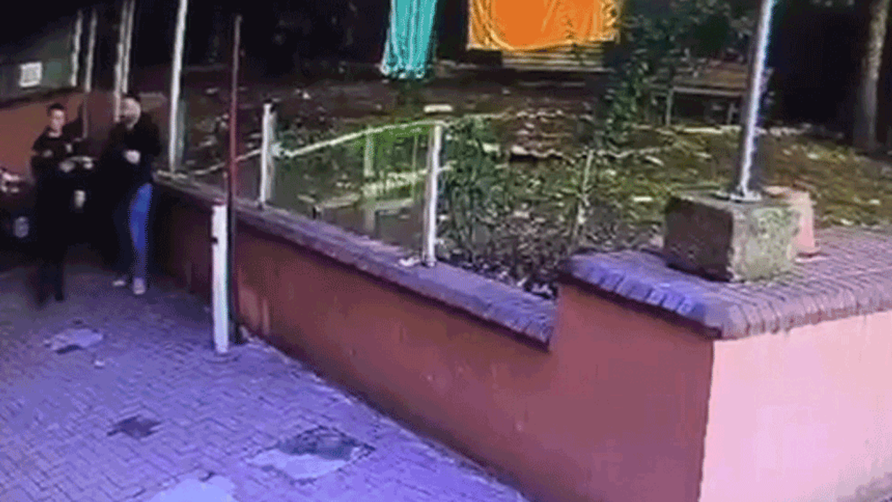 Şişe, itfaiye personelinin birkaç saniye önce ayrıldığı noktaya düşerek büyük bir basınçla patladı. O anlar, istasyonun güvenlik kamerasına anbean yansıdı.