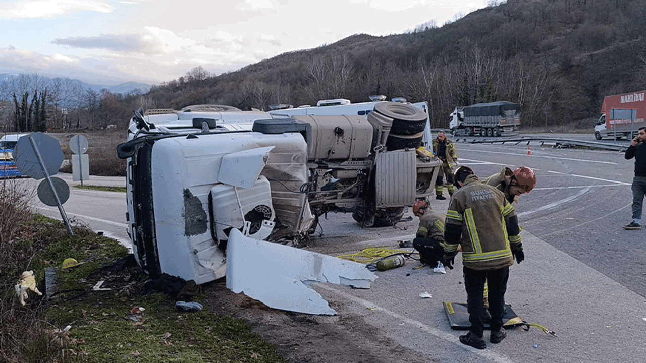 Kaza, dün saat 17.30 sıralarında Bursa-Ankara kara yolu Yeniköy Mahallesi mevkiinde meydana geldi. Edinilen bilgilere göre, Bozüyük'ten İnegöl yönüne seyreden Mehmet Gökbayrak (65) idaresindeki 16 AGK 90 plakalı beton tankeri, virajda sürücüsünün kontrolünden çıkarak devrildi. Tankerin beton yüklü kısmı refüje savrulurken, çekici kısmı ise yolun karşı şeridine devrildi. Kazada araç içerisinde sıkışan sürücü ağır yaralandı. İhbar üzerine olay yerine jandarma, itfaiye ve sağlık ekipleri sevk edildi. Ekipler tarafından sıkıştığı yerden çıkarılan yaralı sürücü, ambulansla İnegöl Devlet Hastanesi'ne kaldırıldı. Sağlık durumunun ciddiyetini koruduğu öğrenilen Gökbayrak, yapılan ilk müdahalenin ardından Bursa Uludağ Üniversitesi Tıp Fakültesi Hastanesi'ne sevk edildi. Gökbayrak, doktorların tüm müdahalelerine rağmen kurtarılamadı.