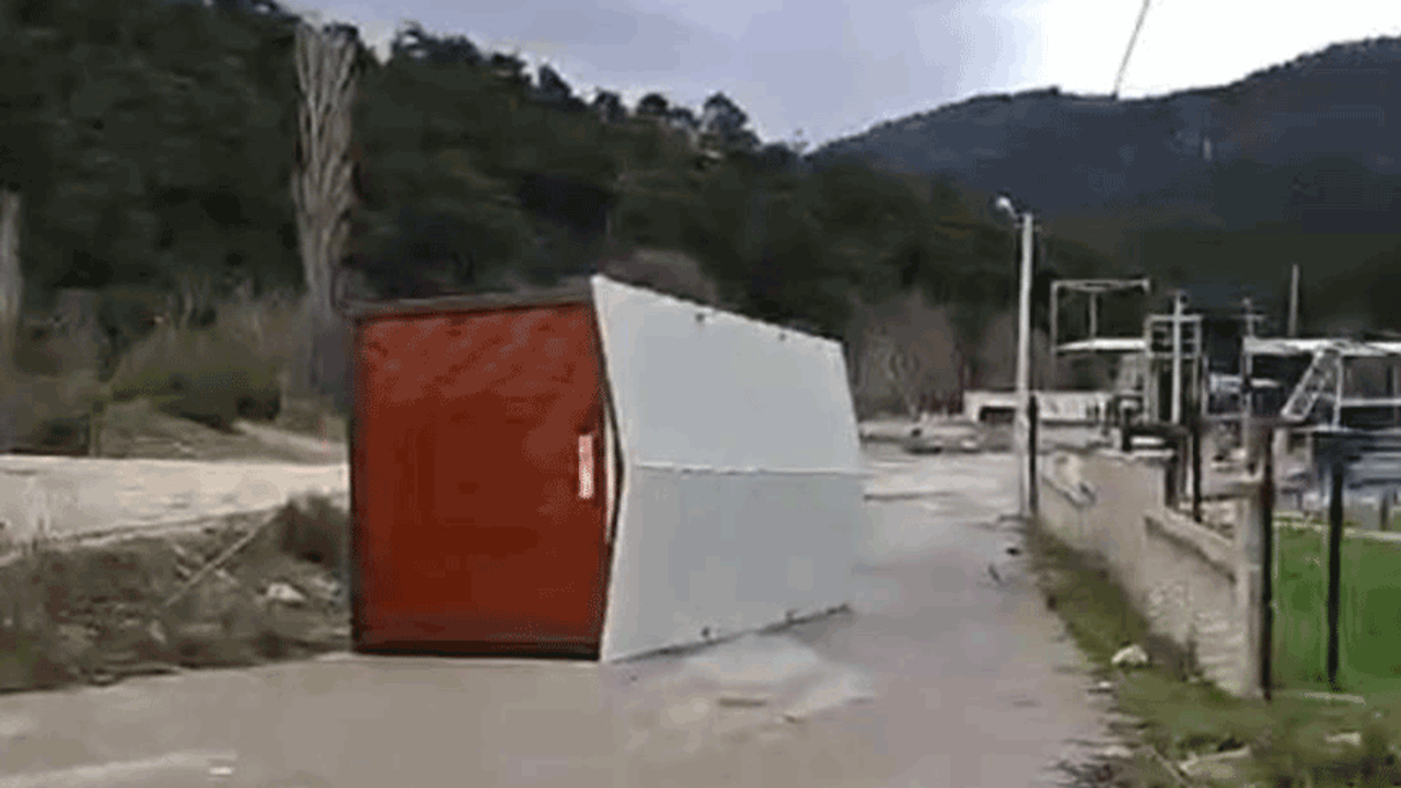 Bursa'nın Nilüfer ilçesi Orhaneli yolunda da bir konteyner seyir haline geçti. Fırtına sebebiyle otobüs durağı devrildi.