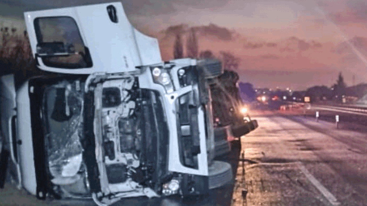 Kaza, 07.30 sıralarında Bursa-Ankara karayolu üzeri İnegöl'ün Şehitler Mahallesi mevkiinde meydana geldi. Uşak ilinden Bursa'ya seyir halinde olan Şerif Ali U. İdaresindeki 64 AF 800 plakalı iplik yüklü tır, sürücüsünün kontrolünden çıkarak devrildi. Kaza sonucu sürücü yaralandı. Yaralı kaza yerine sevk edilen ambulansla İnegöl Devlet Hastanesine kaldırıldı. Bölge trafik ekipleri karayolunu kontrollü olarak ulaşıma açarken Jandarma komutanlığı ekipleri kazayla ilgili soruşturma başlattı.