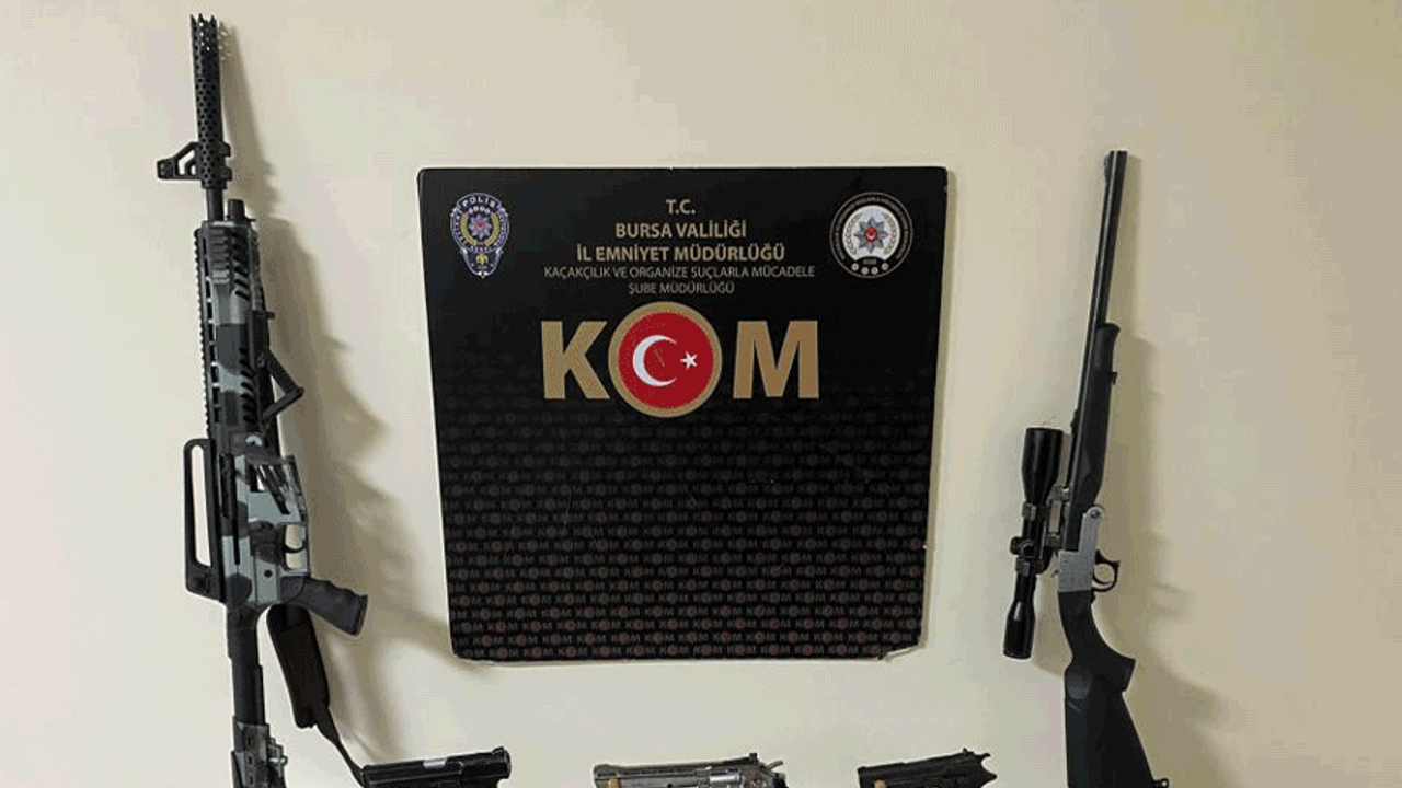 Bursa KOM Şube Müdürlüğü Organize Suçlar Büro Amirliği ve Gemlik İlçe Emniyet Müdürlüğü'nce savcılık koordinesinde ruhsatsız silah imal ve ticareti suçuna yönelik ortak yürütülen planlı çalışma kapsamında yapılan operasyonda, S.T., A.K., V.A. ve E.E. gözaltına alındı. Şüphelilerin ev ve iş yeri aramalarında 10 ruhsatsız tabanca, 2 av tüfeği ve 1 havalı tabanca ele geçirildi.