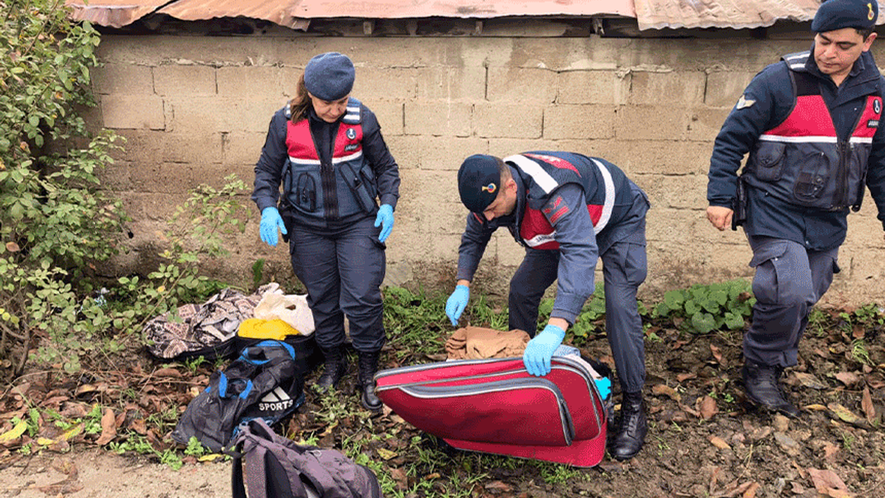 İhbar üzerine olay yerine jandarma ekipleri sevk edildi. Ekipler, görgü tanıklarının ifadelerini aldıktan sonra valizleri inceledi. Yapılan kontrolde valizlerin içinde kadınlara ait kıyafet ve ev eşyaları bulundu.