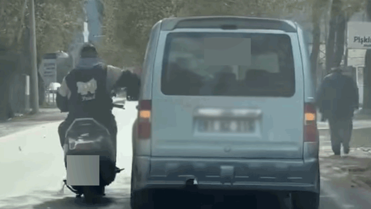 Trafiği ve kendi canını hiçe sayan sürücülerin bu tehlikeli yolculuğu, cep telefonu kamerasıyla anbean kaydedildi.