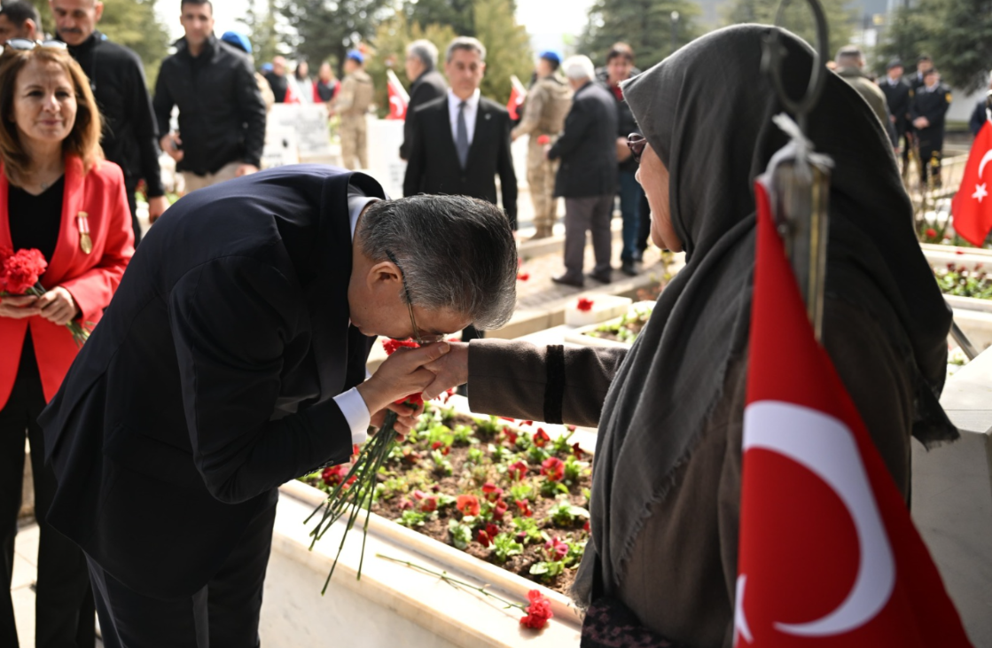 Ardından şehitlerimizin kabirlerini tek tek gezerek karanfil bırakan Vali Yılmaz, şehit aileleriyle yakından ilgilenerek başsağlığı diledi.
