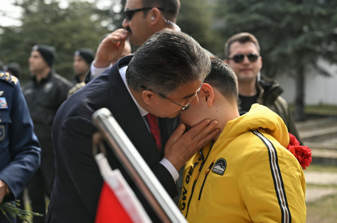 Törende saygı duruşu, İstiklal Marşı'nın okunması ve şehitler için edilen duanın ardından Vali Yılmaz, Muharip Hava Kuvveti ve Garnizon Komutanı Hava Orgeneral Rafet Dalkıran ve Belediye Başkan Vekili Hasan Ünal, şehitlik defterine yazılanları imza altına aldı.