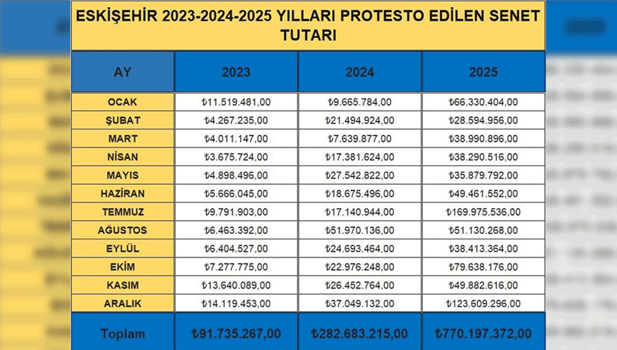 Protesto edilen senet tutarlarındaki artışa da dikkat çeken Yıldız, 2023’te 91 milyon TL olan tutarın 2024’te 282 milyon TL’ye, 2025’te ise 770 milyon TL’ye yükseldiğini belirtti.