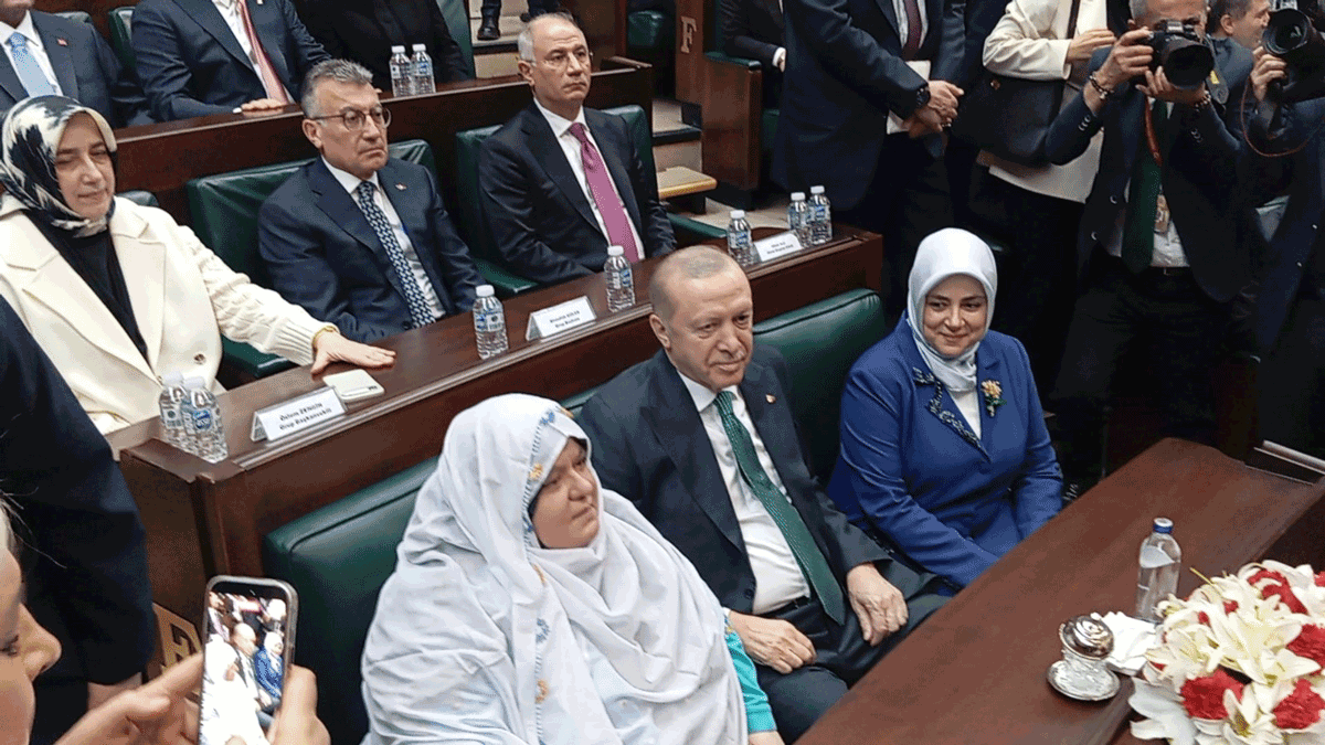 Cumhurbaşkanı ve AK Parti Genel Başkanı Recep Tayyip Erdoğan, partisinin grup toplantısında konuşmak üzere Meclis’e geldi. Erdoğan'ın yanında Mihalgazi Belediye Başkanı Zeynep Güneş de yer aldı. Erdoğan'ın grup toplantısına davet ettiği Başkan Güneş ve beraberindeki 100 tülbentli kadın Meclis'e geldi. Erdoğan, Zeynep Güneş ile toplantıda yan yana oturdu.