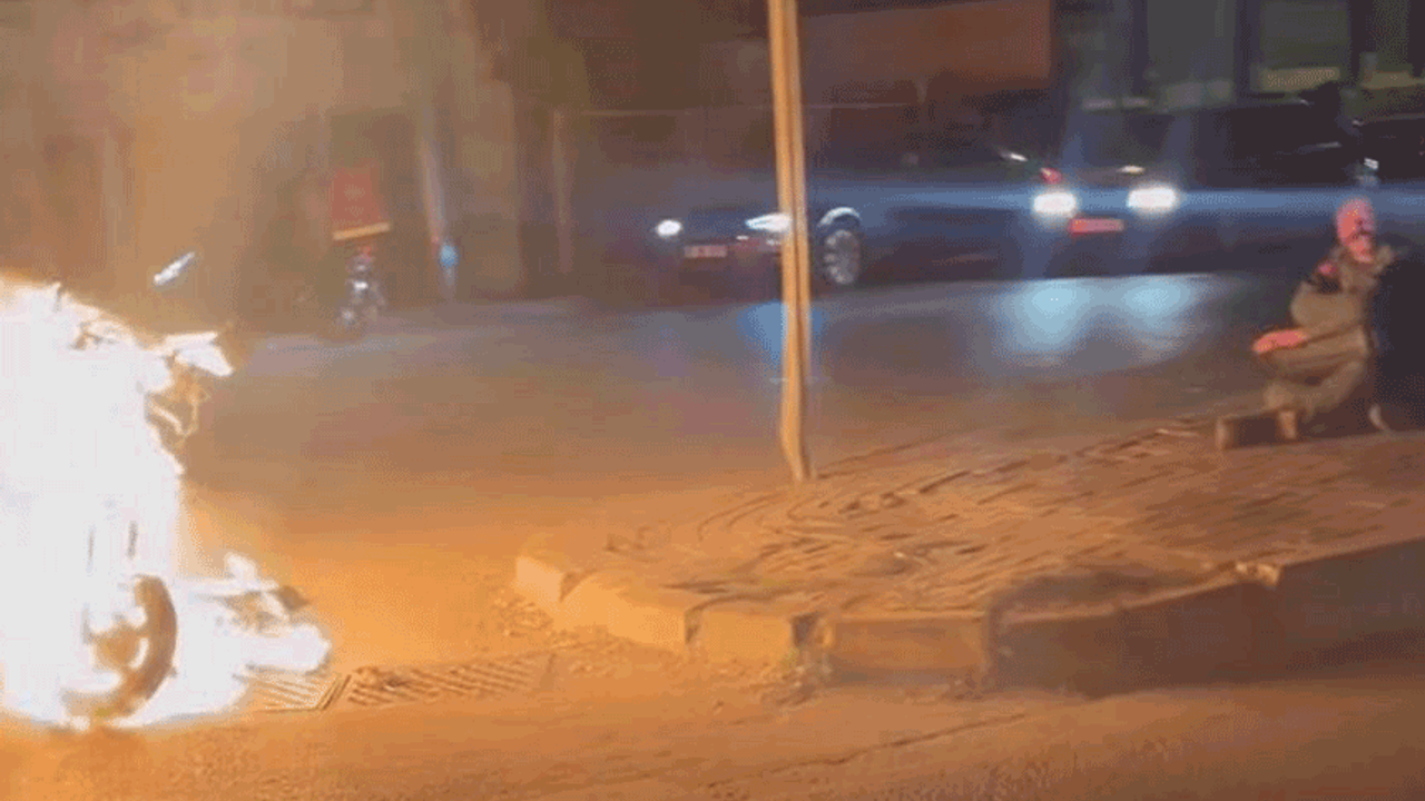 Denizli'de arıza yapan elektrikli motosikletini çalıştıramayan sürücü, aracını yolun ortasında ateşe verdi. Motosikletinin üzerine benzin dökerek ateşe veren sürücü, karşısına oturup yangını izledi.