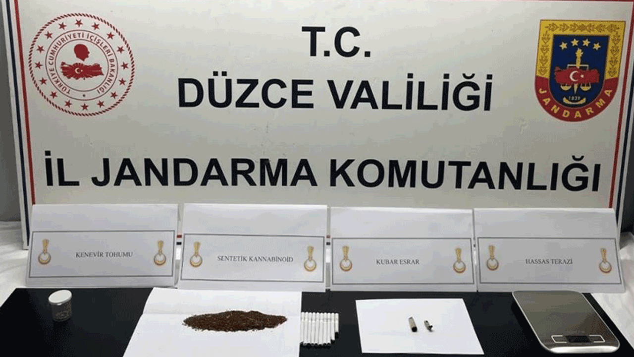 Düzce'de gerçekleştirilen operasyon ve denetimlerde toplam 14 olay ortaya çıkarılırken, bu olaylarla bağlantılı olarak 17 şahıs hakkında adli ve idari işlem yapıldı. Yapılan aramalarda; 1 adet av tüfeği, 56 gram kubar esrar, 36 gram sentetik uyuşturucu hammaddesi, 16 gram kokain, 3 gram metamfetamin, 7 adet sentetik ecza hapı, 6 adet uyuşturucu madde kullanma aparatı, 2 adet hassas terazi, 1 adet bıçak ve 1 adet cep telefonu ele geçirildi. Öte yandan, göçmen kaçakçılığıyla mücadele kapsamında yürütülen çalışmalar çerçevesinde 11 şahıs hakkında da işlem yapıldığı bildirildi.