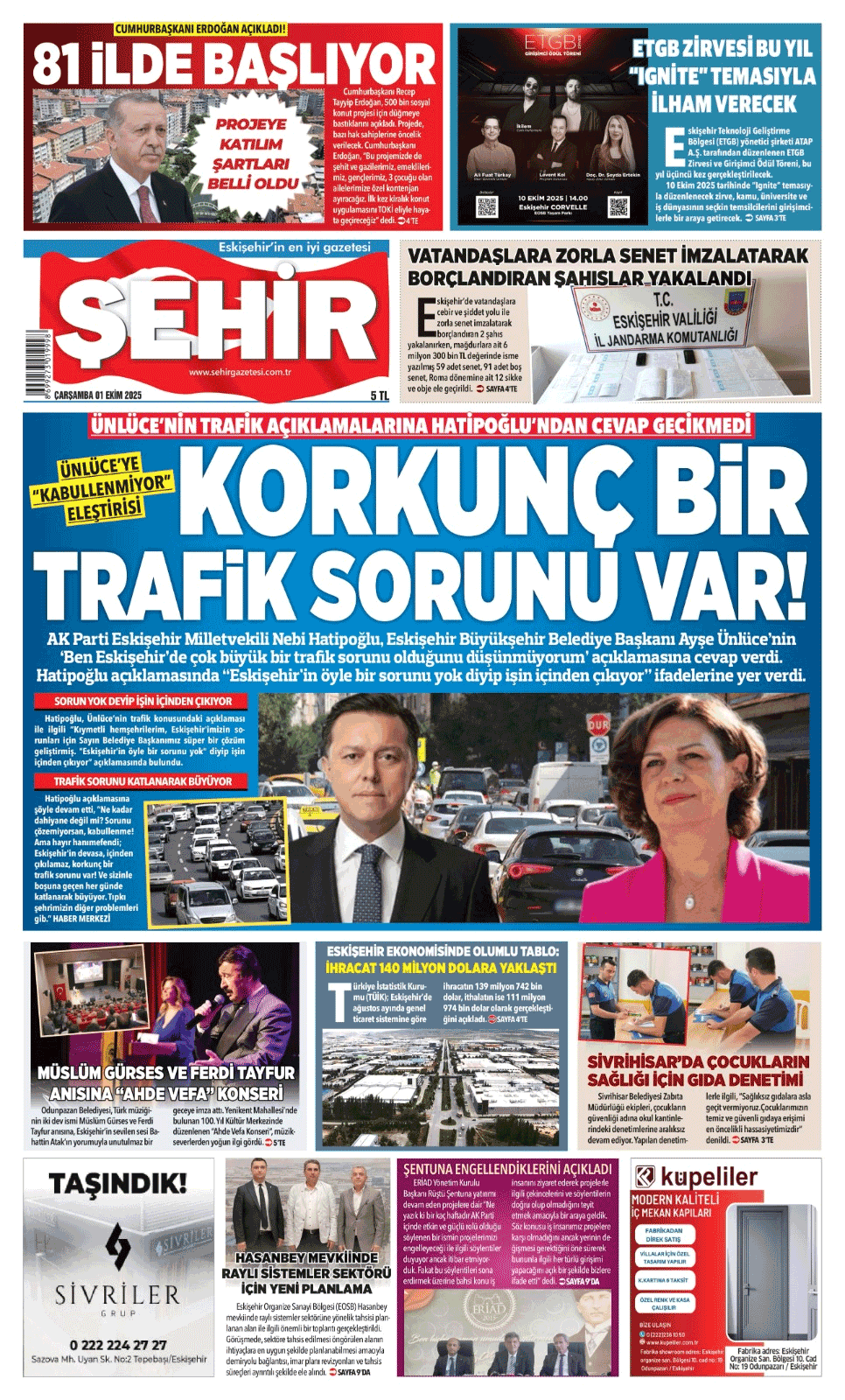 Şehir Gazetesi 1 Ekim 2025 Çarşamba