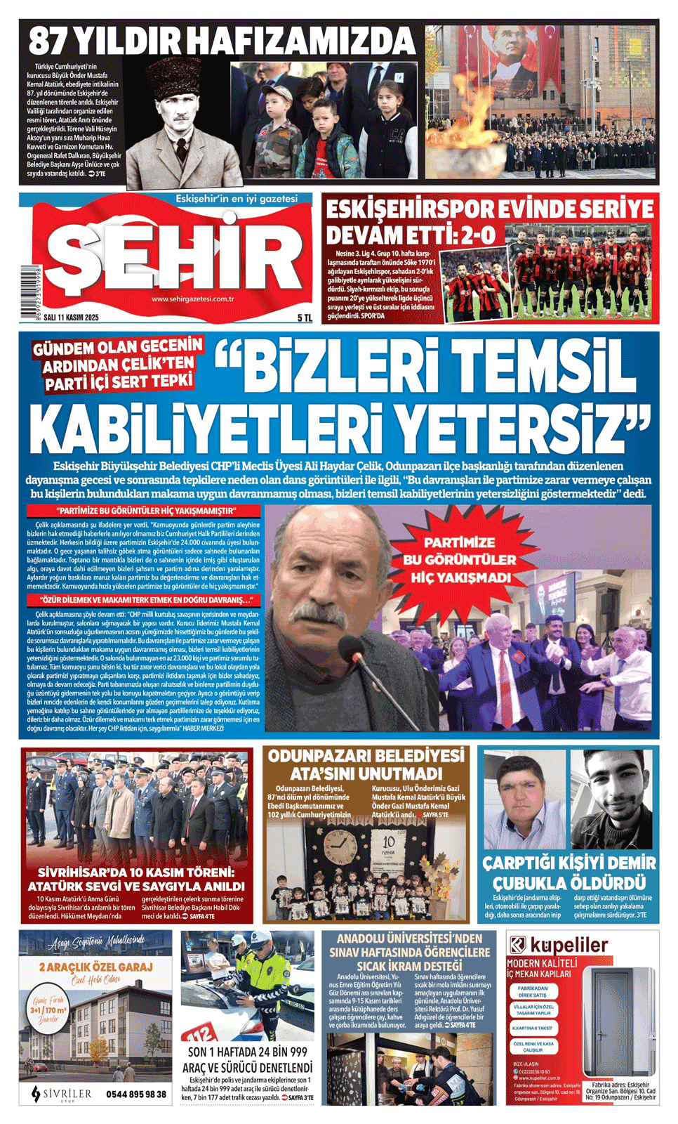 Şehir Gazetesi- 11 Kasım 2025 Salı