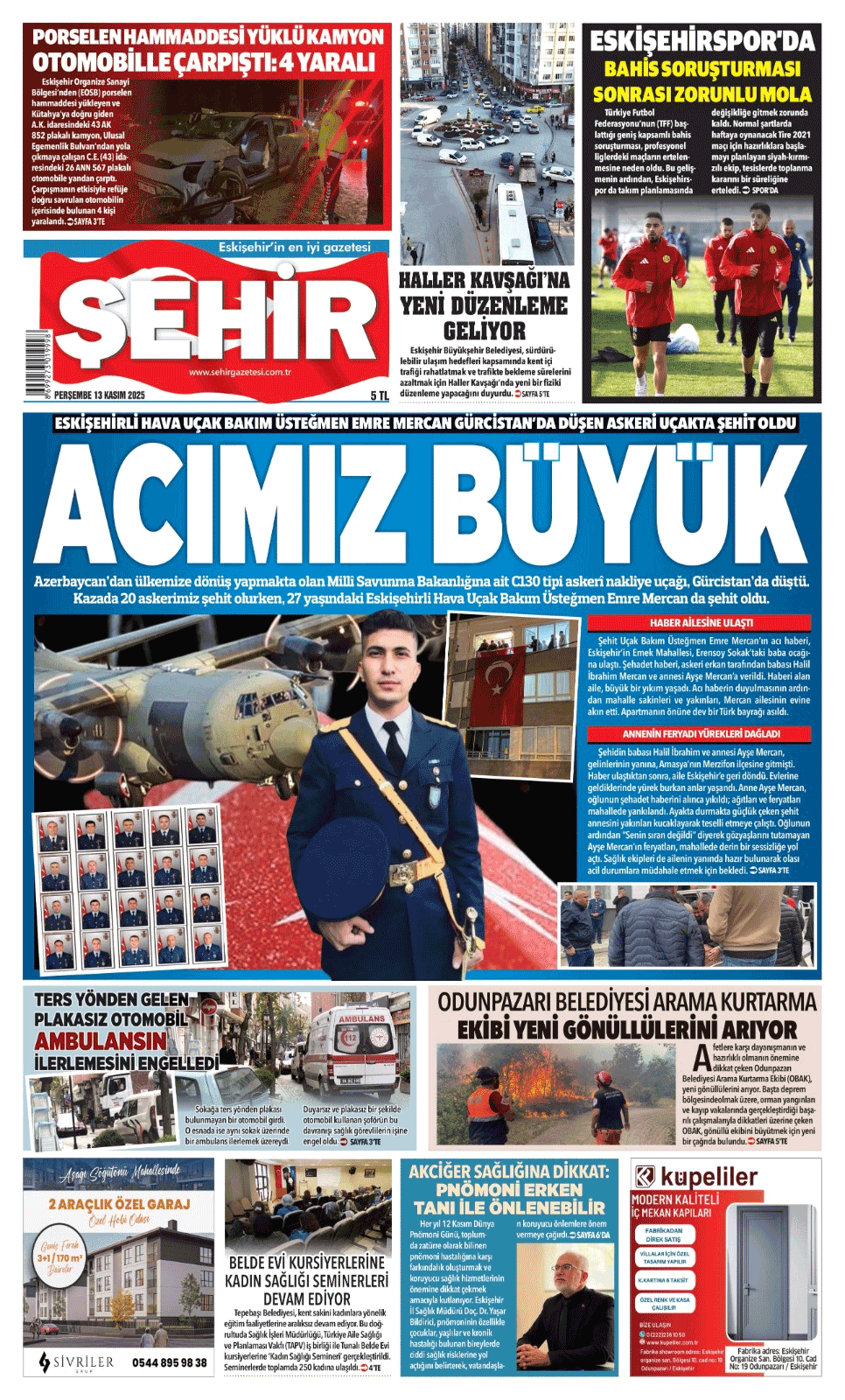 Şehir Gazetesi- 13 Kasım 2025 Perşembe tarihli sayısı
