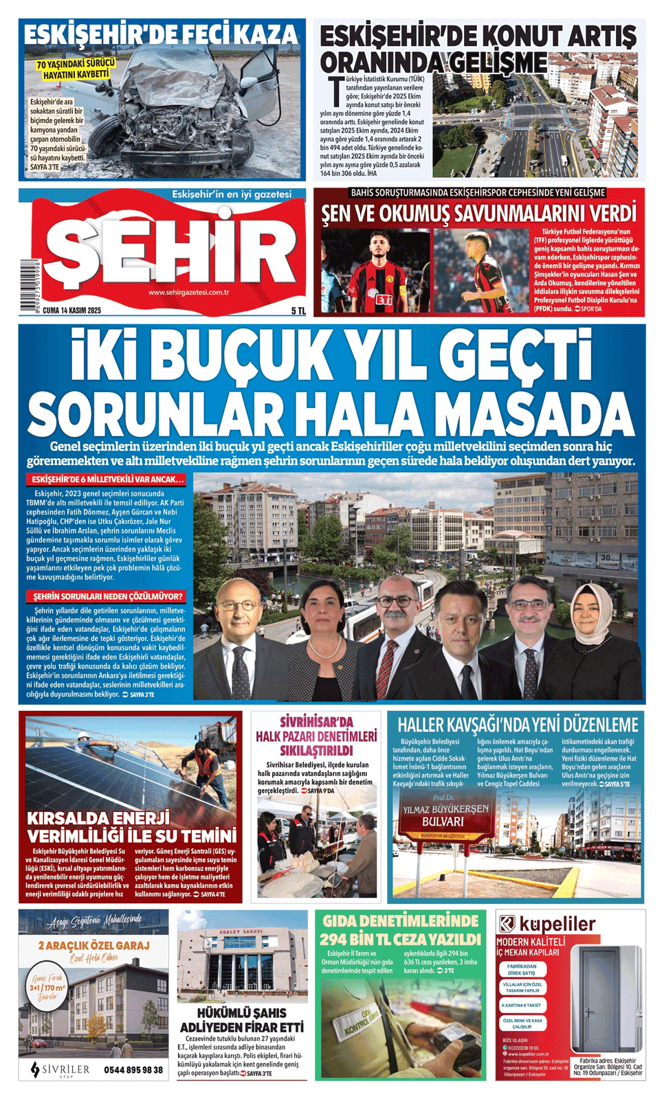 Şehir Gazetesi- 14 Kasım 2025 Cuma tarihli sayısı