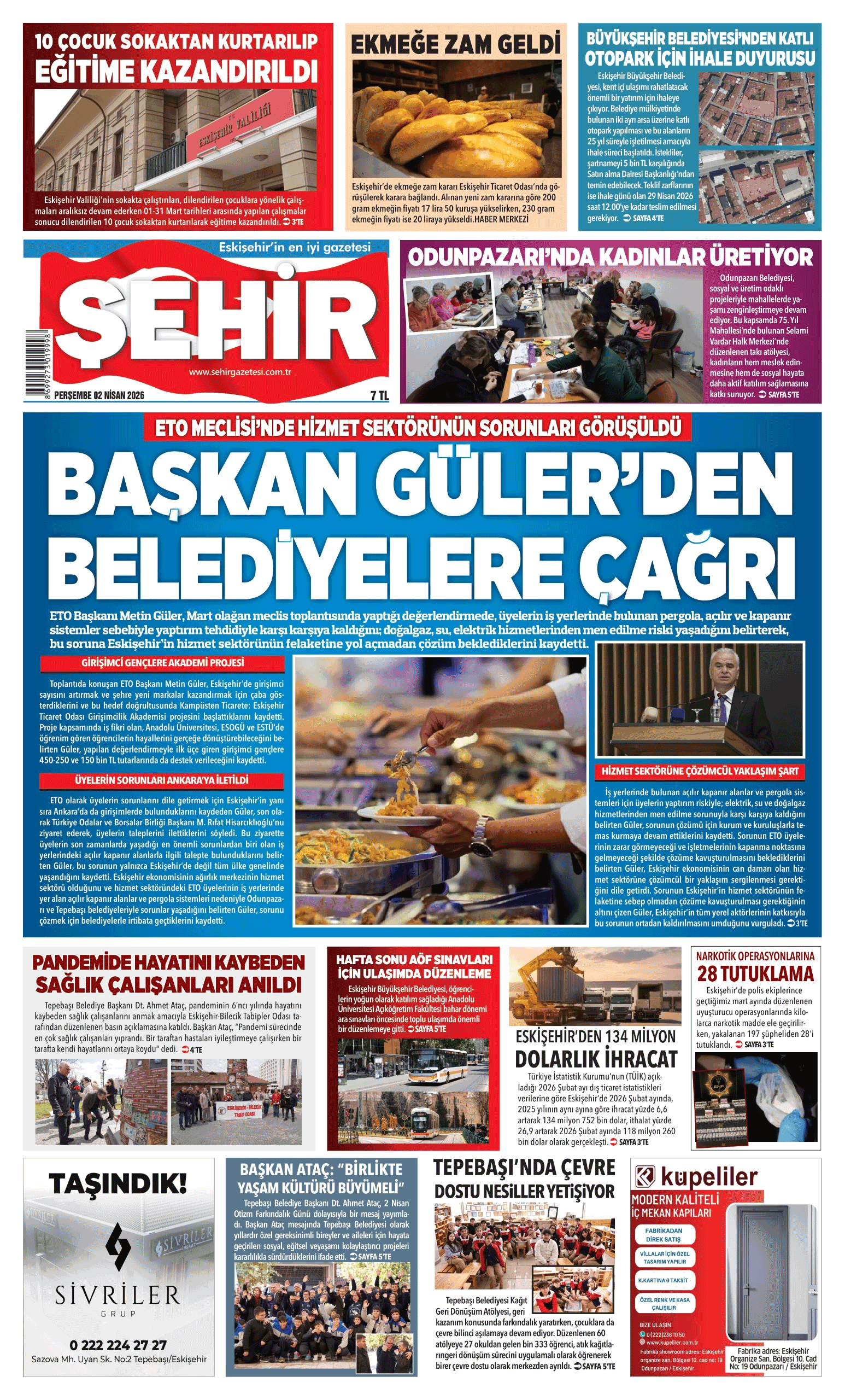 Şehir Gazetesi- 2 Nisan 2026 Perşembe