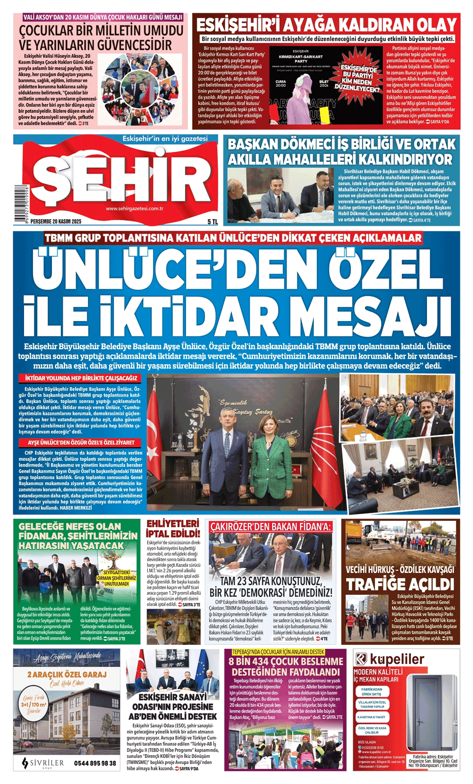Şehir Gazetesi- 20 Kasım 2025 Perşembe tarihli sayısı.