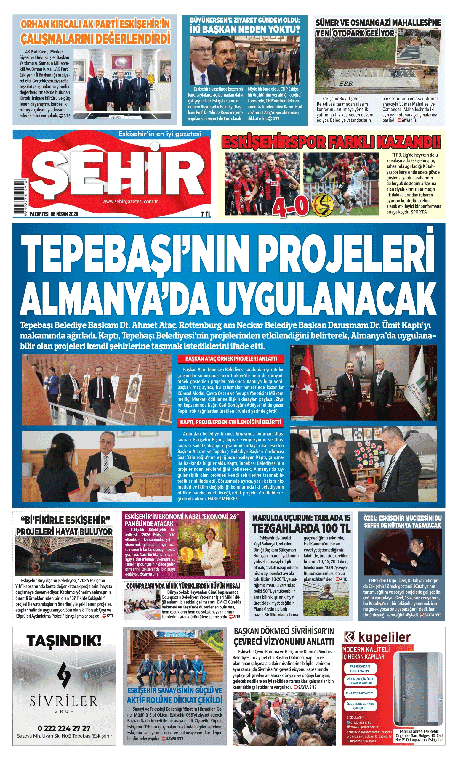 Şehir Gazetesi- 6 Nisan 2026 Pazartesi tarihli sayısı