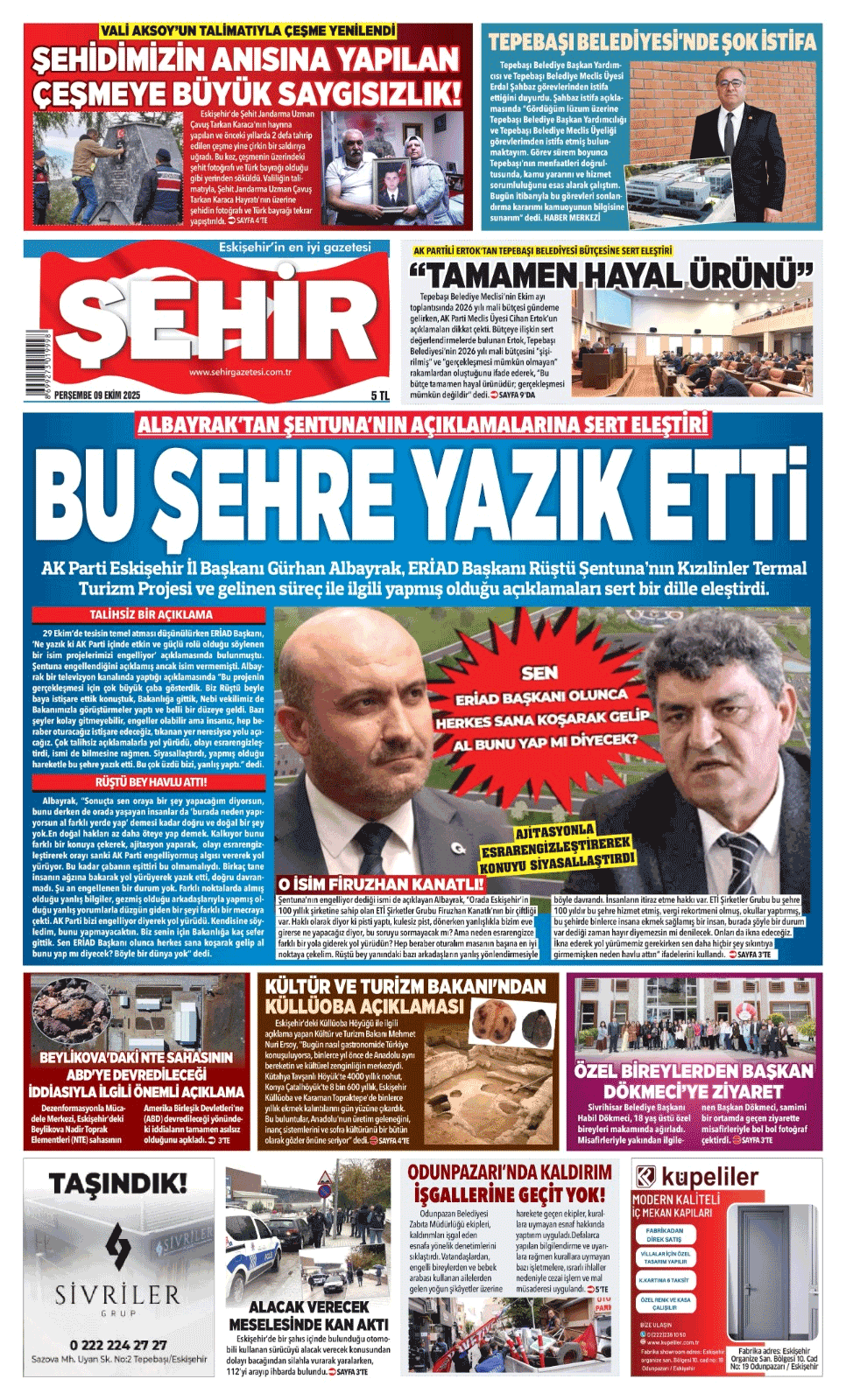 Şehir Gazetesi 9 Ekim 2025 Perşembe