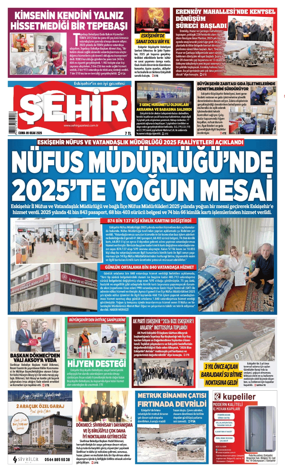 Şehir Gazetesi- 9 Ocak 2026 Cuma tarihli sayısı