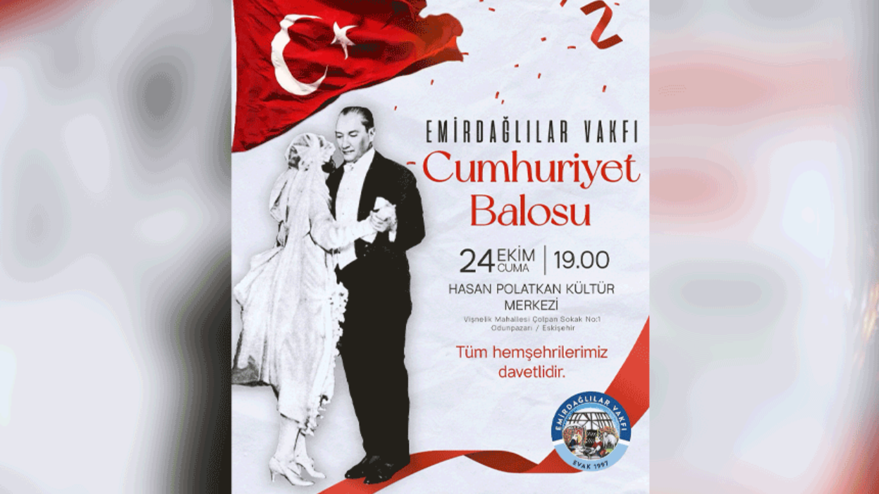 Cumhuriyetin 102. yıl dönümü dolayısıyla Emirdağlılar Vakfı tarafından özel bir kutlama programı hazırlanıyor. 24 Ekim 2025 Cuma akşamı saat 19.00’da Hasan Polatkan Kültür Merkezi’nde gerçekleşecek Cumhuriyet balosu, katılımcılara coşku dolu anlar yaşatacak.