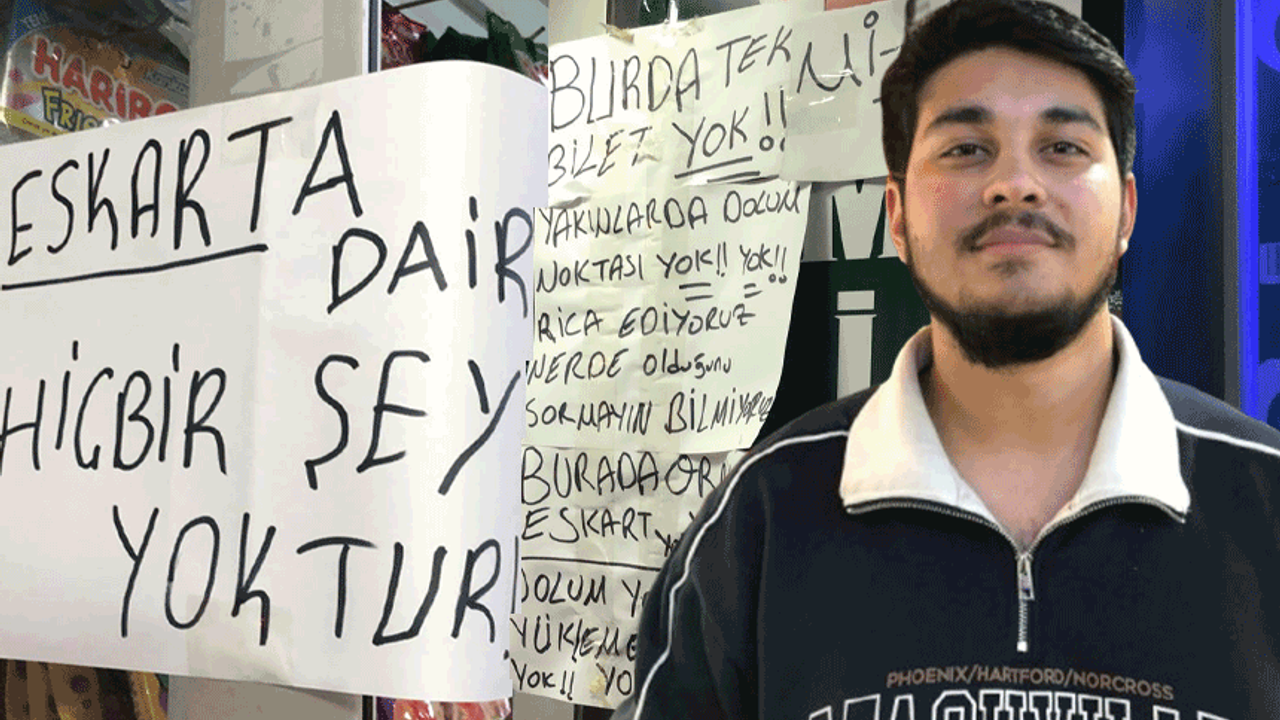 Üniversite Caddesi'nde bulunan bir market, toplu taşıma kartı olan ESKART ve tek kullanımlık bilet satışına yönelik sürekli gelen sorular nedeniyle bunalım yaşıyor. Bu duruma çözümü marketinin önüne astığı "Burada bilet yok, yakınlarda dolum noktası yok, rica ediyoruz nerede olduğunu sormayın bilmiyoruz, burada karekod bilet, ESKART yok, dolum yok, yükleme yok, yok yok yok yok" yazılarında bulan market sahibi Berkay Çetinkaya (23), bu hizmetleri bulundurmamasının sebebinin Büyükşehir Belediyesi'nin satışlardan yüzde 2 kâr vermesi olduğunu belirtti.
