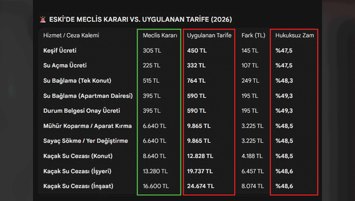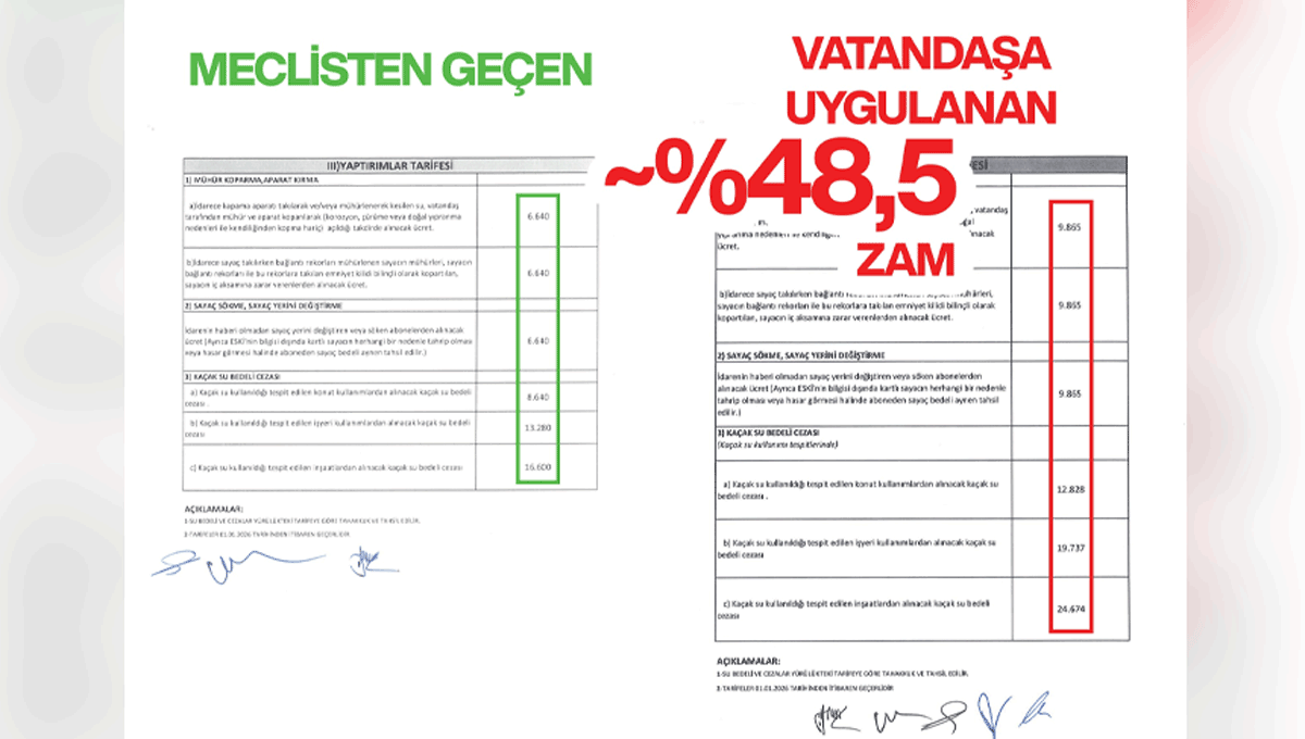 “Bu çerçevede meclis ve komisyonlarda kabul edilen ıslak imzalı asıl karar metinleri ile şu an web sitesindeki ve uygulamadaki tarifelerin ivedilikle karşılaştırılması, kararların Elektronik Belge Yönetim Sistemi (EBYS) üzerindeki tüm log kayıtlarının ve geçmişe dönük işlem hareketlerinin bağımsız bir şekilde incelenmesi, belgeler üzerinde bir tahrifat veya usulsüz bir müdahale söz konusu ise sorumluların vakit kaybetmeksizin tespit edilmesi, vatandaşlarımızdan meclis kararına aykırı şekilde tahsil edilen haksız bedeller varsa bunların iade süreciyle ilgili takvimin açıklanması gerekmektedir.