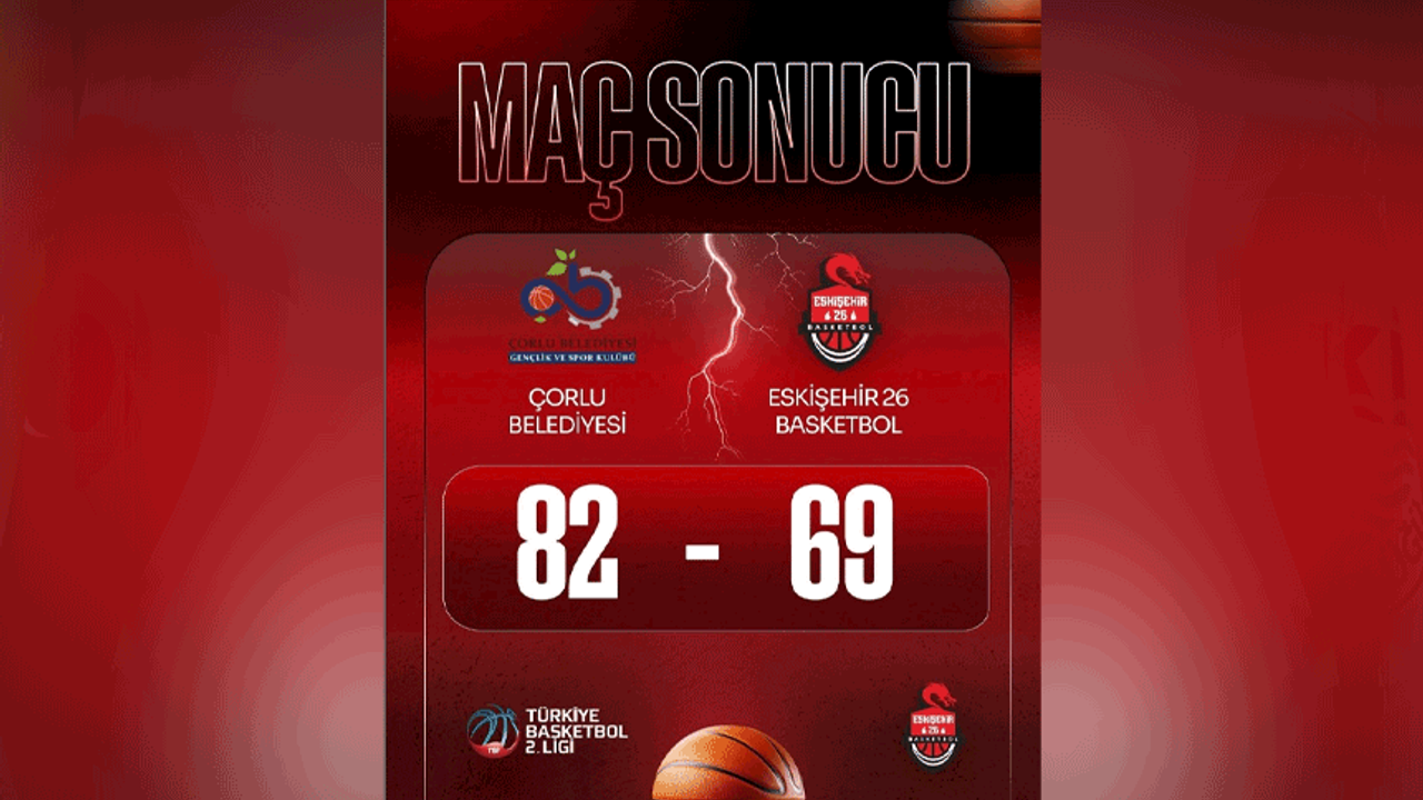 Türkiye Basketbol 2. Ligi’nde mücadele eden Eskişehir 26 Basketbol, Tekirdağ’da oynadığı karşılaşmada Çorlu Belediyesi’ne 82-69 yenildi. Maça iyi başlayan temsilcimiz, ilk yarıda oyunu dengede tutsa da üçüncü periyottaki düşüş geri dönüş şansını azalttı.